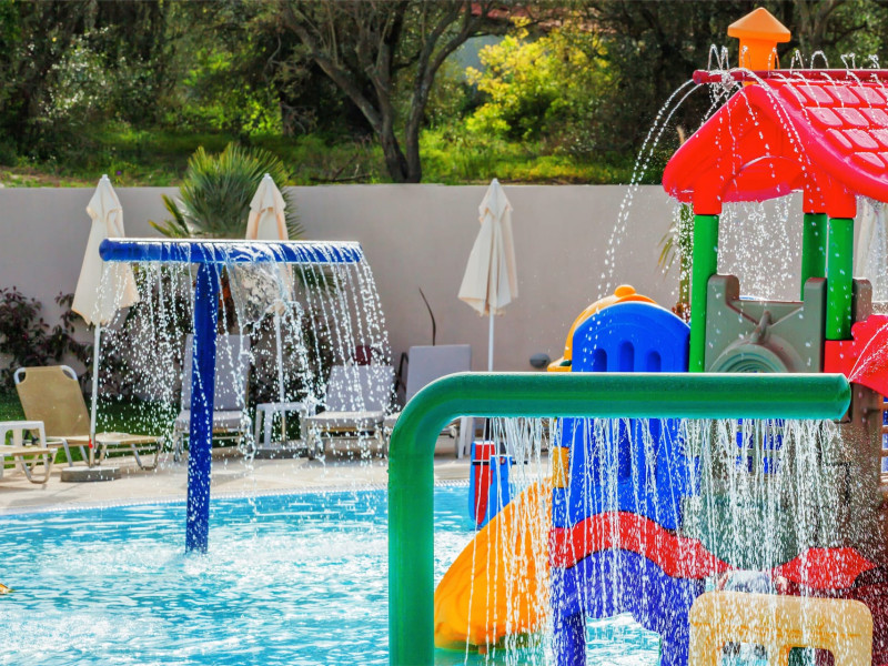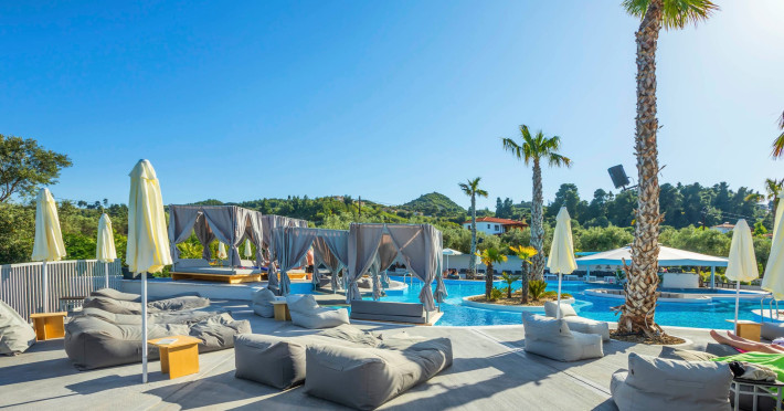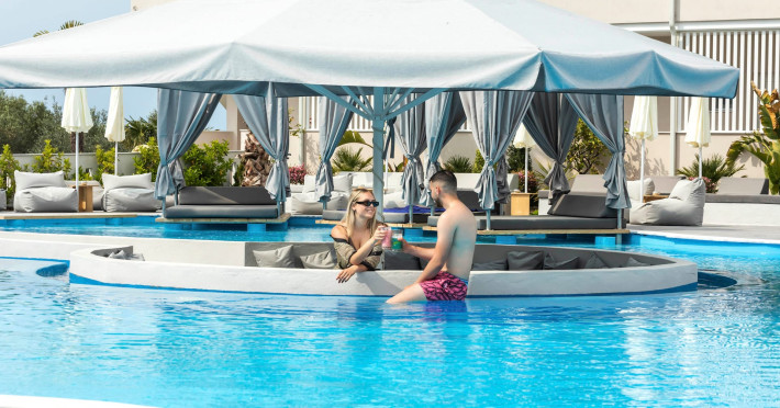 Anna Hotel is a modern and recently renovated Family Hotel with lovely gardens and large swimming pools for adults and childrenâs, located close to the beach and the famous nightlife of Pefkohori. Our Highlights the main pool the adults pool and the splash-park. Ensuring the most exciting family holidays we designed specifically for young guest the splash-park next to our main pool. One of the biggest pool in the area invites you to swim and relax. We serve all our beverages and snacks next to your sun bed. The new 2,000 square foot Adult Only Outdoor Pool, (for those 16 years of age and older), at Anna Hotel has been completed and is open. The new Palm Pool features a poolside bar where you can enjoy a refreshing cocktail in and out the water.