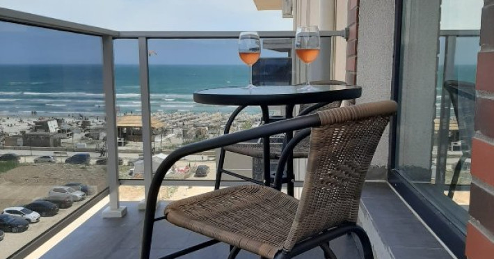 Va prezentam un apartament cu 2 camere cu vedere la mare, situat la doar 50 de metri de plaja si promenada. Cu un dormitor si un living, acesta poate gazdui pana la 4 adulti si 1 copil. De asemenea, beneficiati de un loc de parcare privat.