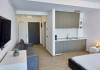 Dotari camere: Studiorile Jaz 3 si 4 sunt open space, cu zona de dormit cu pat matrimonial si un fotoliu extensibil, televizor, zona bucatarie cu toate dotarile necesare (plita, frigider, fierbator apa, vesela, zona de servit masa), baia cu cabina de us de tip walk-in, balcon mobilat cu vedere partiala la mare/ lac. Beneficiaza de sistem de climatizare, wifi. Capacitatea maxima de cazare este de 3 persoane.