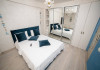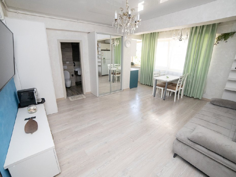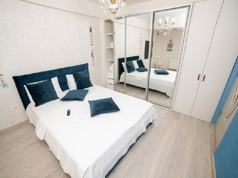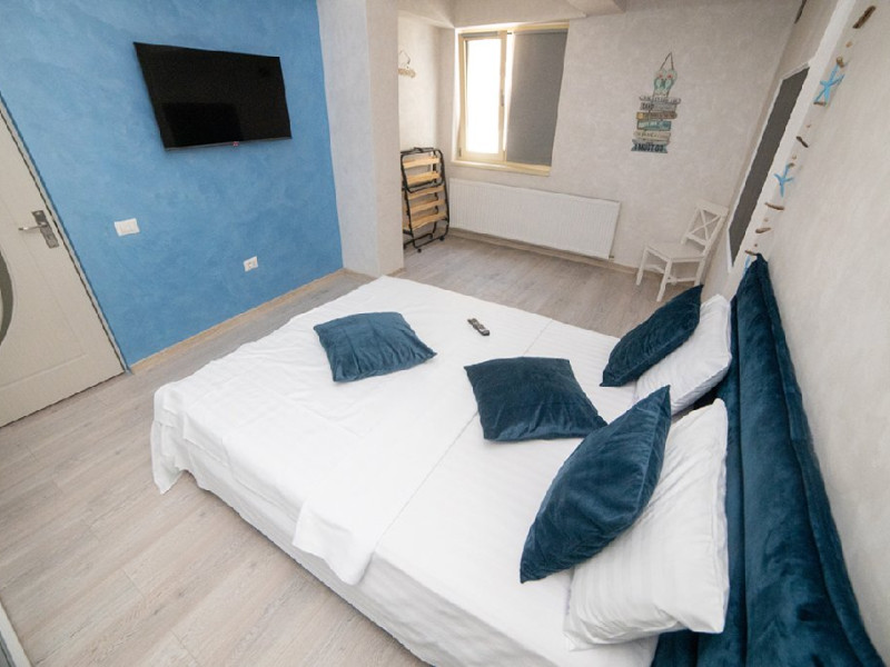 Apartament cu 2 camere amplasat la doar 70 de metri de plaja si promenada, langa plaja Mackerel, pe strada D25, la etajul 2. Apartamentul are capacitatea de cazare pentru 4 adulti si 1 copil, fiind potrivit pentru o vacanta confortabila si relaxanta in statiunea Mamaia Nord. Locatia sa excelenta ii ofera acces rapid la plaja si la numeroasele restaurante si facilitati din apropiere, cum ar fi Mackerel, Manor si Complexul Alezzi. Mobilat si utilat modern, apartamentul dispune de un living spatios dotat cu o canapea extensibila, oferindu-va un loc confortabil pentru relaxare si socializare in timpul sejurului. Dormitorul este echipat cu un pat matrimonial si un dressing, asigurandu-va un somn odihnitor si spatiu generos pentru depozitarea obiectelor personale. Aerul conditionat va permite sa va mentineti temperatura optima in apartament in functie de preferinte, garantandu-va confort in timpul intregului sejur. Exista doua smart TV-uri, astfel incat sa puteti urmari filmele sau emisiunile preferate in timpul liber. Bucataria este complet utilata, asigurandu-va toate facilitatile necesare pentru a pregati mesele in confortul propriului apartament. De asemenea, veti gasi o masina de spalat rufe, care va ofera posibilitatea de a avea grija de rufe in timpul sederii. Wi-Fi gratuit este disponibil in intregul apartament, astfel incat sa puteti ramane conectat si informat in timpul sejurului. Mentionam ca acest apartament nu dispune de balcon. Cu toate acestea, va veti bucura de o locatie minunata, la doar cativa pasi de plaja si cu acces facil la numeroasele optiuni de divertisment si restaurante din apropiere. 4 adulti + 1 copil, 1 canapea extensibila, 1 pat dublu, Nu dispune de parcare privata