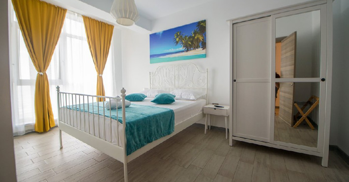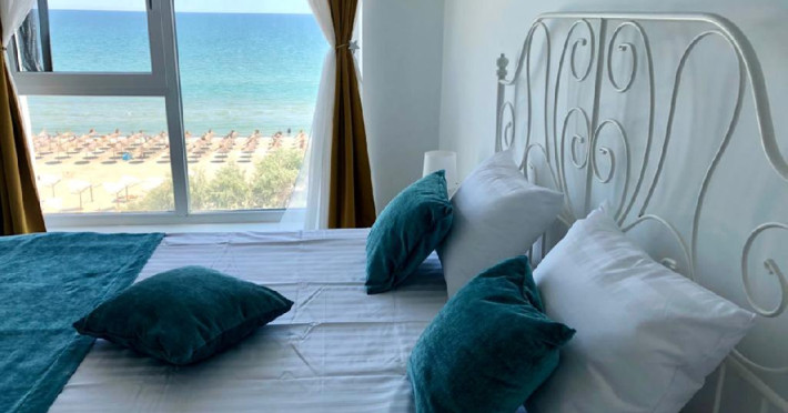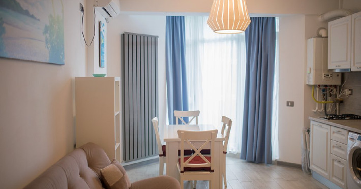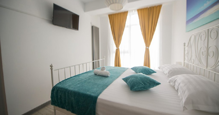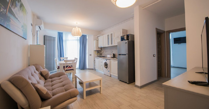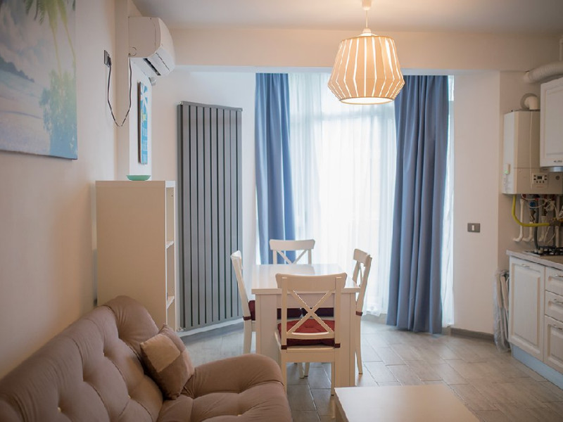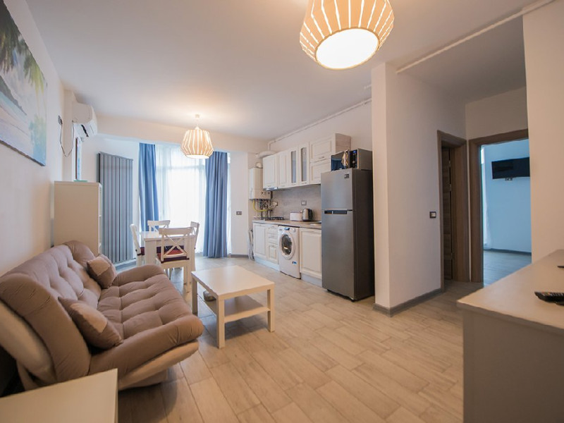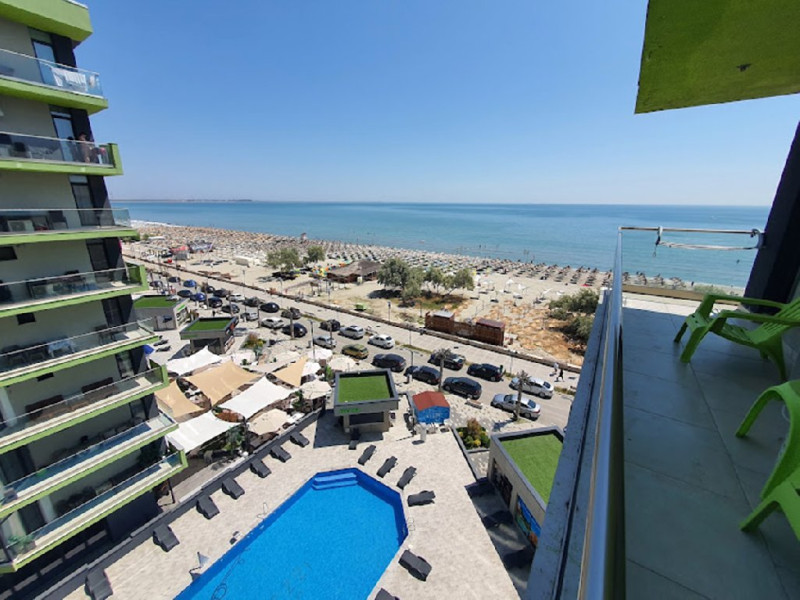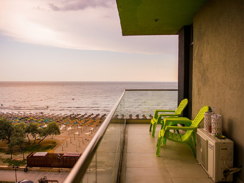 Apartament spatios cu 3 camere situat in complexul Alezzi, cu vedere frontala la mare. Acest apartament dispune de 2 dormitoare si un living, putand gazdui pana la 6 persoane, oferind o experienta deosebita pe litoralul Marii Negre. Amplasat in complexul rezidential Alezzi - Beach Resort, pe strada D13, corp D, etajul 6, acest apartament va ofera o priveliste minunata catre mare. Complexul Alezzi dispune de facilitati variate, cum ar fi 4 restaurante, o gelaterie, un lounge cu bar si terasa, precum si o farmacie, asigurandu-va un sejur relaxant. Ca turist in complexul Alezzi, beneficiati de o serie de facilitati gratuite, cum ar fi accesul la un SPA, o sala de fitness, o sauna umeda si uscata, piscine in aer liber pentru adulti si copii, jacuzzi interior, loc de joaca pentru copii si o frumoasa gradina. Apartamentul este mobilat si utilat modern pentru a va oferi un sejur confortabil si placut. In living veti gasi o canapea, iar cele 2 dormitoare includ un dormitor matrimonial cu baie proprie si un dormitor cu pat matrimonial. Toate camerele sunt dotate cu aer conditionat pentru a va asigura un climat confortabil in orice moment. In fiecare dintre cele 3 camere veti gasi un smart TV pentru a va bucura de divertisment si conectivitate. Bucataria este complet utilata, permitandu-va sa pregatiti mese delicioase in intimitatea apartamentului. Baia principala este prevazuta cu cabina de dus, in timp ce baia matrimoniala are o cada pentru momente de relaxare. Accesul la internet este asigurat prin Wi-Fi gratuit in intregul apartament. In plus, puteti petrece momente de relaxare pe terasa cu vedere la mare, unde veti gasi mobilier confortabil. Apartamentul este situat la doar 20 de metri distanta de plaja si promenada, in apropierea plajei ZANZIBAR, ceea ce va permite sa va bucurati de plaja si marea la doar cativa pasi de locatie. Cu toate aceste facilitati si confort, veti experimenta un sejur memorabil in acest apartament de vis cu vedere la mare. 6 adulti + 1 copil, 1 canapea extensibila, Nu dispune de parcare privata, Vedere la mare, 2 paturi duble