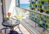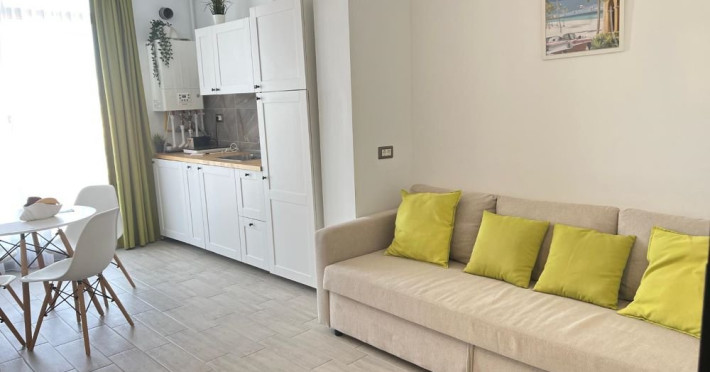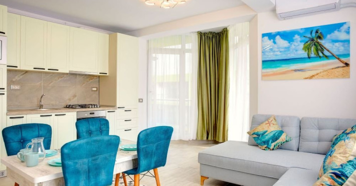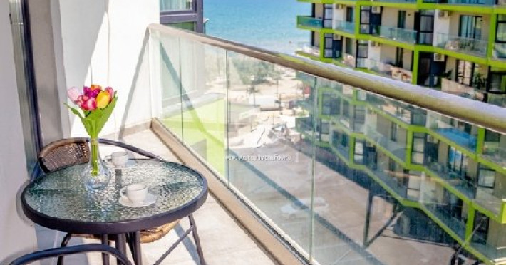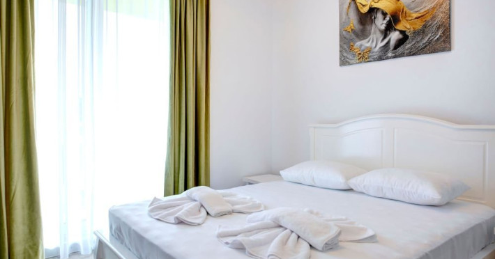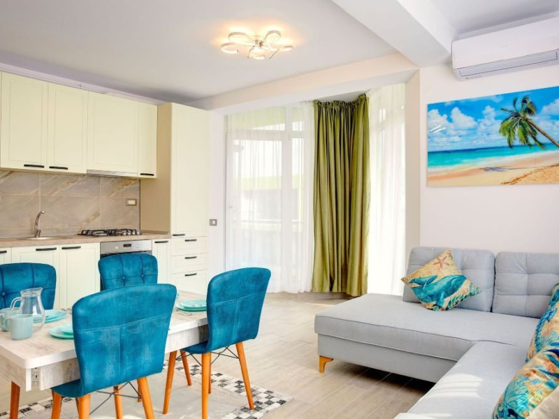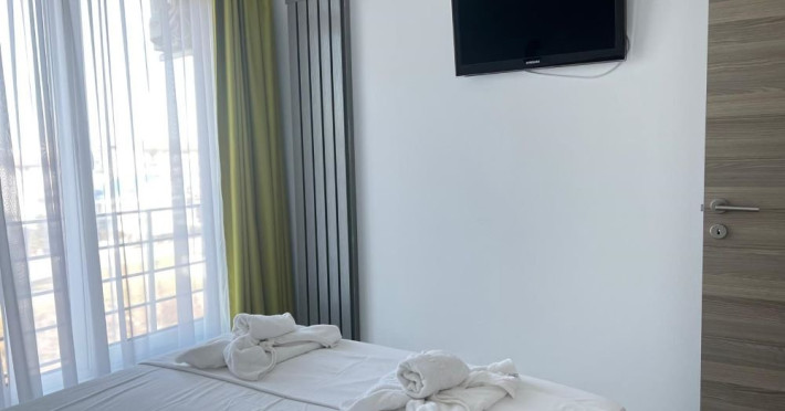Studio Mihnea Alezzi - este format din living cu canapea extensibila si dormitor cu pat matrimonial. Livingul este open space, cu zona de relaxare, de luat masa si de gatit. Bucataria este utilata si dotata cu frigider. Baie proprie cu cabina de dus, masina de spalat. Balcon cu mobilier si vedere spre mare. Wifi, tv in ambele camere, aer conditionat. Suprafata 42 mp. Adresa strada Prelungirea D13 nr. 6, Bl K, et. 4.