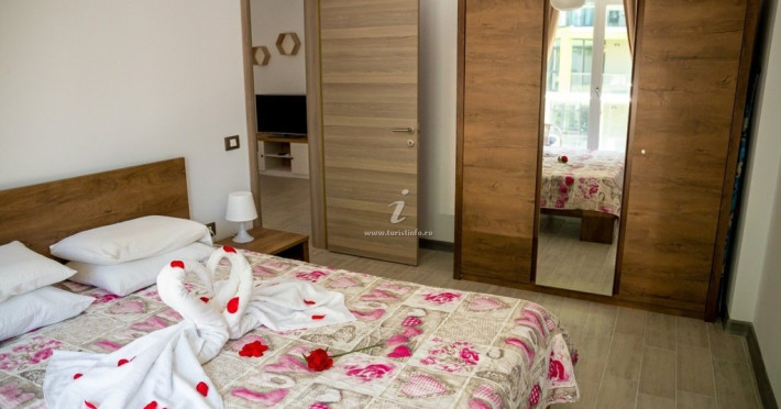 Dotari camere: Apartament Vinaros Alezzi - este format din living si dormitor. Livingul dispune de canapea extensibila, zona de luat masa, bucataria completa utilata (aragaz, frigider, aparat de cafea, cuptor cu microunde), dormitorul este cu pat matrimonial, baie cu cabina de dus si masina de spalat,TV in ambele camere, wifi, aer conditionat, balcon. Suprafata 55 mp. Adresa strada Prelungirea D13 nr. 6 Bl G, et. 5.