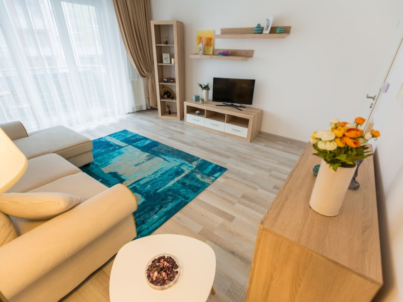 Near Silviu Ploiesteanu Stadium. Located in Brasov, this apartment is connected to a shopping center, within a 10-minute drive of Council House and Piata Sfatului. This apartment is 1.6 mi (2.6 km) from Silviu Ploiesteanu Stadium and 3.4 mi (5.4 km) from Black Church. Make yourself comfortable in this apartment, featuring a kitchen with a refrigerator and an oven. A flat-screen television with cable programming provides entertainment, while complimentary wireless Internet access keeps you connected. Conveniences include a microwave and a coffee/tea maker.