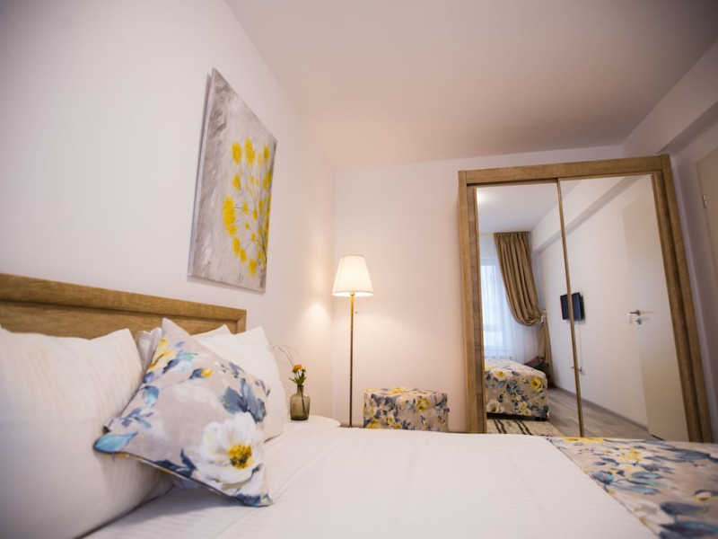 Property Desc:Property Location Located in Brasov, this apartment is connected to a shopping center, a 4-minute drive from Silviu Ploiesteanu Stadium and 5 minutes from Paradisul Acvatic. This apartment is 10.5 mi (16.9 km) from Poiana Brasov Ski Resort and 2.8 mi (4.6 km) from MureÅenilor House Memorial Museum.Rooms Make yourself comfortable in this apartment, featuring a kitchen with a refrigerator and an oven. A flat-screen television with cable programming provides entertainment, while complimentary wireless internet access keeps you connected. Conveniences include a microwave and a coffee/tea maker.Business, Other Amenities Featured amenities include laundry facilities and an elevator. Free self parking is available onsite.Attractions Distances are displayed to the nearest 0.1 mile and kilometer. Silviu Ploiesteanu Stadium - 2.5 km / 1.6 mi Paradisul Acvatic - 3.5 km / 2.2 mi White Tower - 4.3 km / 2.7 mi MureÅenilor House Memorial Museum - 4.4 km / 2.8 mi BraÅov Historical Museum - 4.5 km / 2.8 mi Ethnographic Museum - 4.5 km / 2.8 mi Telecabina - 4.5 km / 2.8 mi Art Museum - 4.5 km / 2.8 mi Piata Sfatului - 4.5 km / 2.8 mi Council House - 4.5 km / 2.8 mi Republicii Bulevard - 4.5 km / 2.8 mi Citadel - 4.6 km / 2.8 mi Trumpeters Tower - 4.6 km / 2.8 mi Memorial to Victims of the 1989 Revolution - 4.6 km / 2.9 mi Hirscher House - 4.7 km / 2.9 mi The nearest airports are:BraÈov-Ghimbav Intl. Airport (GHV) - 6.3 km / 3.9 mi Henri Coanda Intl. Airport (OTP) - 163 km / 101.3 mi Bucharest (BBU-Aurel Vlaicu) - 171.2 km / 106.4 mi House RulesChildren welcomeNo petsNo smokingSpoken LanguagesEnglishKnow Before You Go: This property advises that enhanced cleaning and guest safety measures are currently in place.The property is professionally cleaned; disinfectant is used to clean the property; commonly-touched surfaces are cleaned with disinfectant between stays; bed sheets and towels are laundered at a temperature of at least 60°C/140°F.Contactless check-in and contactless check-out are available.This property affirms that it adheres to the cleaning and disinfection practices of COVID-19 Guidelines (CDC). Checkin Instructions: Extra-person charges may apply and vary depending on property policyGovernment-issued photo identification and a credit card, debit card, or cash deposit may be required at check-in for incidental chargesSpecial requests are subject to availability upon check-in and may incur additional charges; special requests cannot be guaranteedThis property is professionally cleanedSafety features at this property include a fire extinguisher and a smoke detector Special Checkin Instructions: There is no front desk at this property. Guests will receive an email 24 hours before arrival with check-in instructions. Guests can access their accommodation through a private entrance.Guests can choose to either self-clean the property prior to check-out, or pay an additional cleaning fee of RON 80 at check-out.Checkin Time: 2:00 PMCheckin End Time: midnightCheckout Time: 11:00 AM