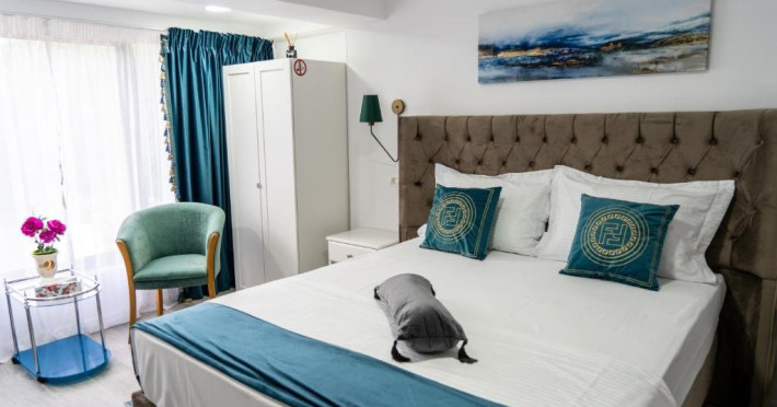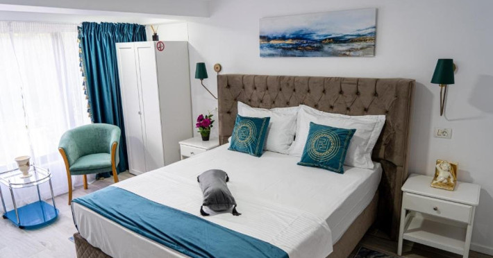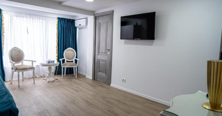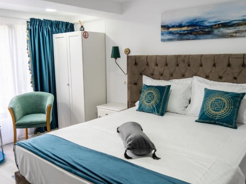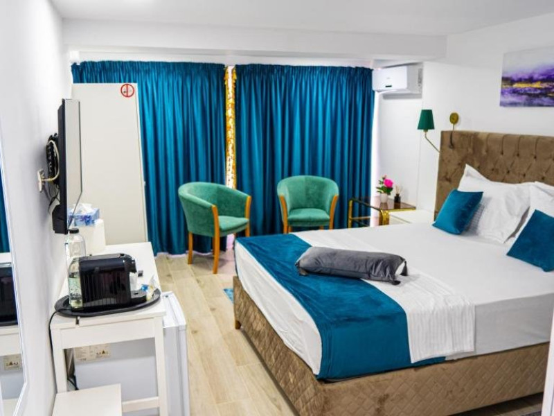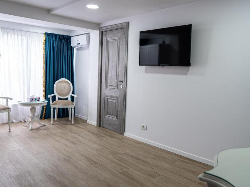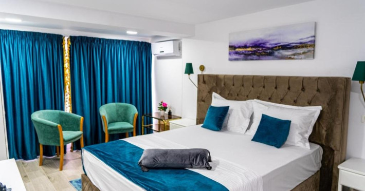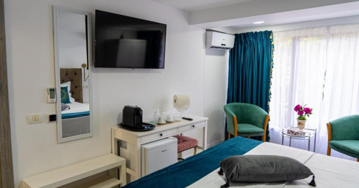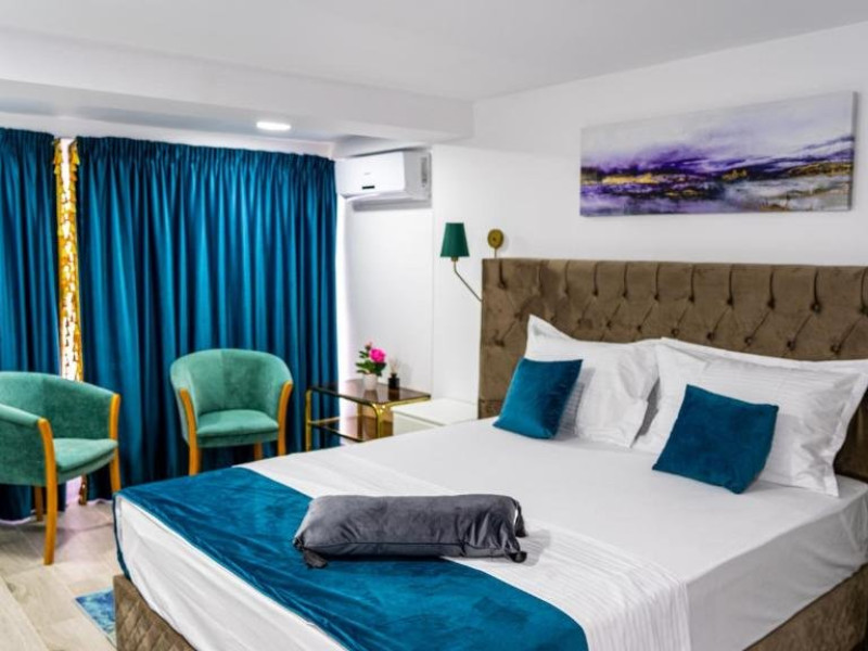 Facilitati camer: Papuci, kettle, apa plata, telefon, Smart Tv, WiFi, cada/dus, cosmetice premium, uscator de par, baie proprie, zona de relaxare(masa cu scaune), pantofar, cuier, vanity kit, set ac ata, AC.