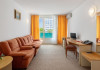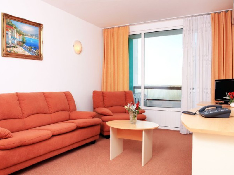 Informatii HOTEL BALADA, situat in statiunea Saturn, langa hotel Hora si hotel Mures, este un hotel renovat la doar 20 m de plaja. Acesta are 269 camere duble, 14 apartamente repartizate pe 14 etaje. Va informam ca incepand cu acest sezon se va incasa la check-in taxa de statiune, in valoare de 5 lei/persoana/zi, conform HCL 283/23.12.2020 care ne-a fost adusa la cunostinta in cursul zilei de 25.01.2021. Vor fi taxate toate persoanele cu varsta de 18 ani impliniti. Dotari si servicii Hotelul detine restaurant, bar-de-zi, terasa, parcare cu paza, Aqua Park Balada, sala fitness, internet la receptie, baza de tratament proprie unde pot fi efectuate proceduri balneare. Acces gratuit la piscina Aqua Park Balada in perioada 20.06-06.09.2022, cu sezlong si umbrela (in limita locurilor disponibile). Parcarea contra cost in limita locurilor disponibile, 35 lei/ autoturism/ zi si se achita la receptia hotelului. Nu se accepta animale de companie. Servicii masa MASA: restaurant propriu 3*. Mic dejun - bufet suedez, obligatoriu pe toata perioada. Dejun si Cina - sistem A la carte la restaurantul propriu sau autoservire (Restaurant Cerna statiunea Saturn)- pe baza de card - restaurantul hotelului. Micul dejun si mesele principale in sistem bufet suedez se realizeaza pentru minim 20 de persoane. Pana la 20 de persoane, turistii vor servi micul dejun/dejunul/cina in sistem A la carte de valoarea aferenta. Pentru turistii ce beneficiaza de servicii cu demipensiune exista posibilitatea de a opta pentru servirea dejunului sau a cinei la alegere, urmand a-si exprima optiunea la check-in. Dotari camere Camera dubla - paturi twin, baie cu dus,TV, aer conditionat, minibar, balcon, telefon, uscator par, vedere catre mare. Apartamente - living cu canapea extensibila, dormitor cu pat matrimonial, baie cu dus,TV, aer conditionat, minibar, balcon, telefon, uscator par, vedere catre mare. FACILITATI COPII in camera cu 2 adulti: - 2 adulti + 1 sau 2 copii 0-2.99 ani beneficiaza de cazare si masa gratuita. - 2 adulti + 1 sau 2 copii 3-11.99 ani - beneficiaza de cazare gratuita, fara pat suplimentar dar achita 50% din valoarea meselor. FACILITATI COPII in apartament: - 2 adulti + 1 sau 2 copii 3-11.99 beneficiaza de cazare gratuita, si achita 50% din valoarea mesei. - 2 adulti + 2 copii 12-17.99 ani beneficiaza de gratuitate la cazare, si achita 100% din valoarea mesei. - al 3-lea adult beneficiaza de cazare gratuita, si achita 100% din valoarea mesei. - 3 adulti + 1 copil 0-11.99 ani, pentru al 3-lea adult se achita 100% din valoarea mesei si pentru copil se achita 50% din valoarea mesei. - capacitate maxima - 2 adulti si 2 copii (0-17.99 ani) sau 3 adulti si 1 copil (0-11.99 ani).