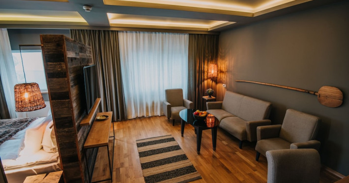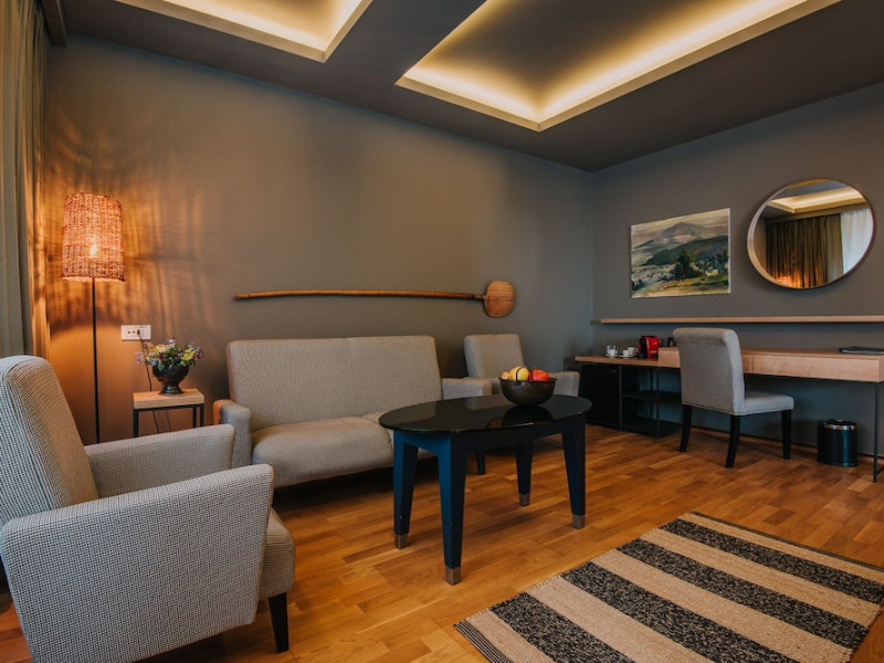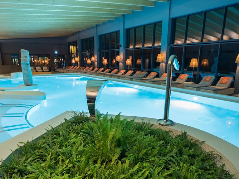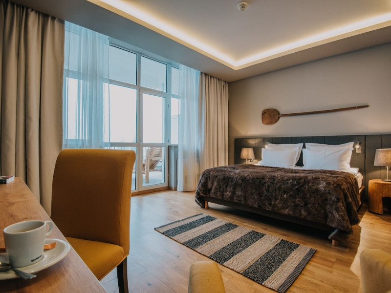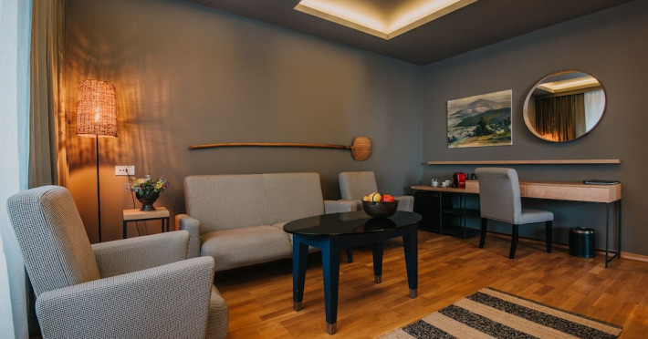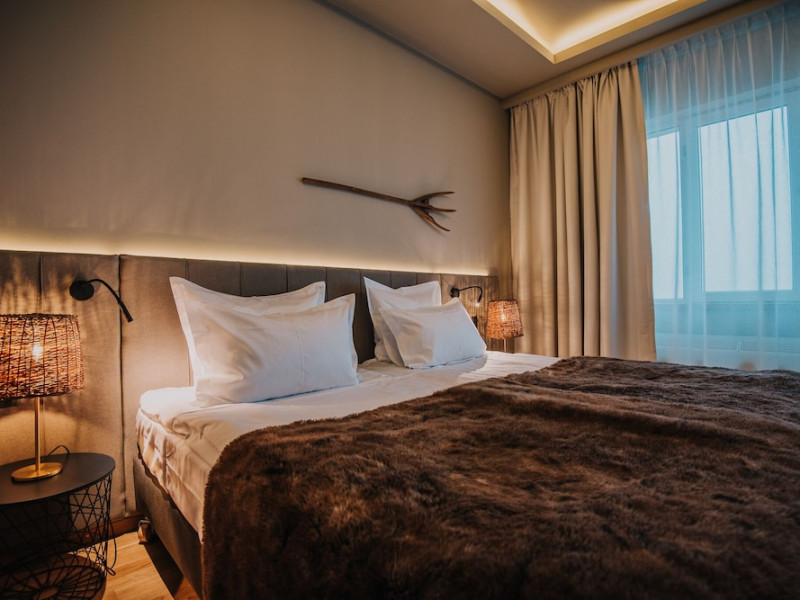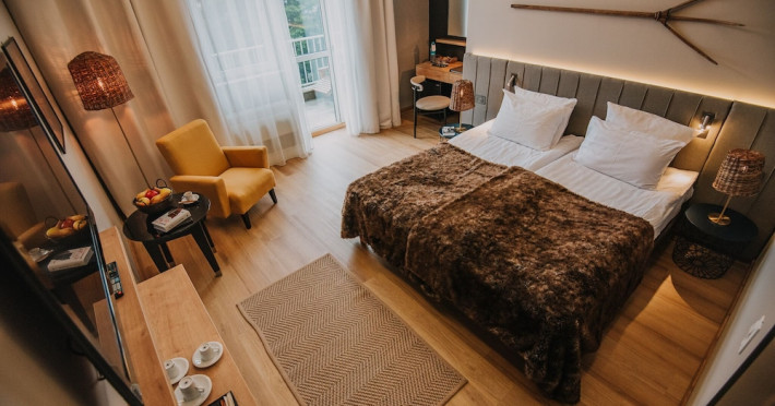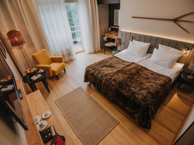 Grand Hotel Balvanyos enjoys a tranquil location surrounded by forests, between BÄile TuÅnad and Târgu Secuiesc, less than 6.2 mi from the Saint Ana Lake. Free spa access is offered. All rooms are furnished in an elegant, modern style and offer panoramic views of the Cioma Mountain. Each of the spacious rooms at Grand Hotel Balvanyos comes with a mini-bar, air conditioning, a flat-screen TV and free wired internet access. Free WiFi is available in the public areas. Nestled among natural springs and secular fir trees, the hotels Grand Santerra Spa stretches on over 2,000 square yards and features 7 swimming pools, 3 saunas, a steam bath and a salt room. The modern fitness room is the starting and ending point of a 1.1 mi running track. Massages and therapies can be arranged at an extra fee and guests can enjoy healthy snacks at the Spa Café. Characteristic Romanian and regional specialties are served in the Grand Hotel Balvanyos Restaurant. You can also order special diet menus and packed lunches. The stylish café offers aromatic coffee, tea and and a wide range of drinks. Bike rental is available on site and the region is popular for hiking. The Puturoasa Cave can be reached on foot in 15 minutes. The BÄile Tusnad train station is 9.9 mi away.WiFi is available in all areas and is free of charge. Free private parking is available on site (reservation is not needed). Pets are not allowed. Children of all ages are allowed. Children 2 and under stay for free when using an available crib. Children 5 and under stay for free when using an existing bed. Children from 6 to 14 years old stay for 125 lei per person, per night when using an existing bed. Children from 7 to 14 years old stay for 175 lei per person, per night when using an available extra bed. Any type of extra bed or crib is upon request and needs to be confirmed by management. Additional fees are not calculated automatically in the total cost and will have to be paid for separately during your stay.Checkin Time: 16:00Checkin End Time: 00:00Checkout From: 08:00Checkout End Time: 12:00Hotel important information: Due to the coronavirus (COVID-19), this property is taking steps to protect the safety of guests and staff. Certain services and amenities may be reduced or unavailable as a result. Due to the coronavirus (COVID-19), wearing a face mask is mandatory in all indoor common areas. Please note that only the rooms with standard rates can be paid with holiday vouchers issued by Sodexo, Edenred and Check Vacances. Please note that the Wellness Center Grand Santerra Spa is open on Monday from 12:00 to 21:00, and from Tuesday to Sunday from 9:00 until 21:00. Please note that children under the age of 14 have access to the spa between 9:00-19:00. Only guests older than 14 years old have access between 19:00-21:00.