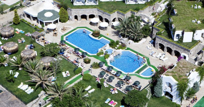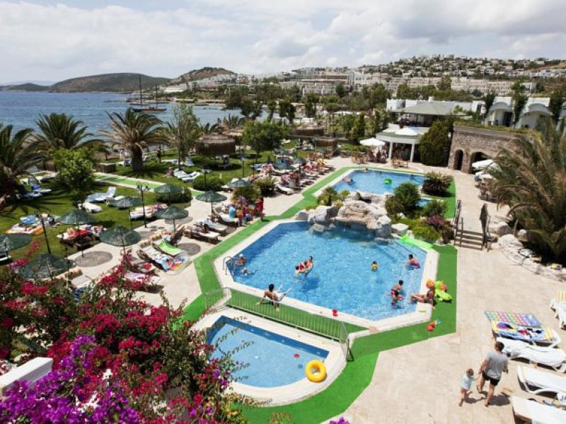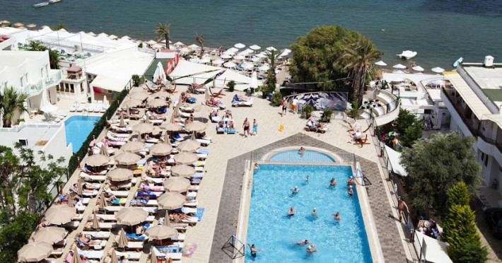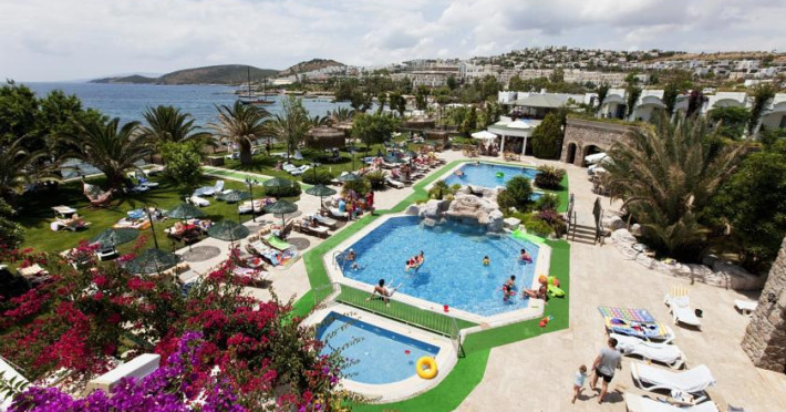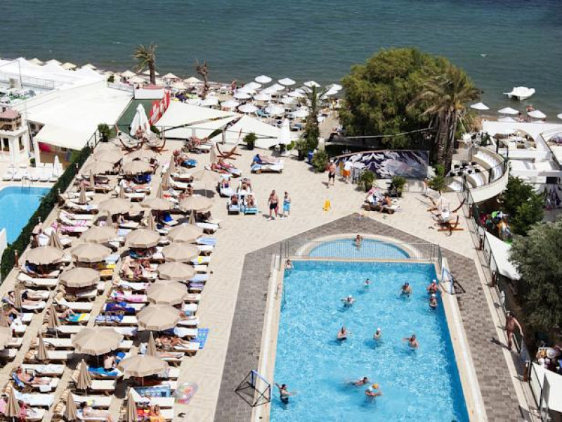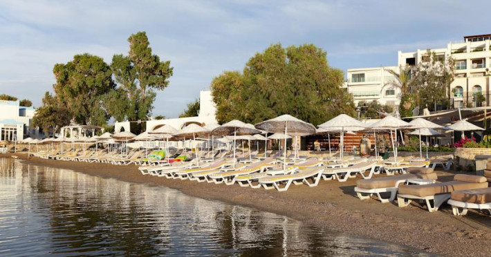 Hotelul Batihan Beach Resort se află pe malul mării la 7 km de centrul staţiunii Kusadasi şi la 135 km de aeroportul din Bodrum.