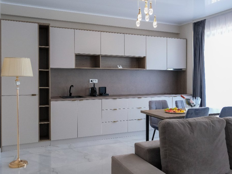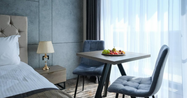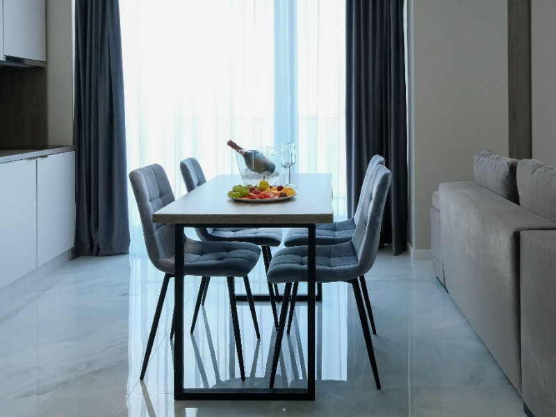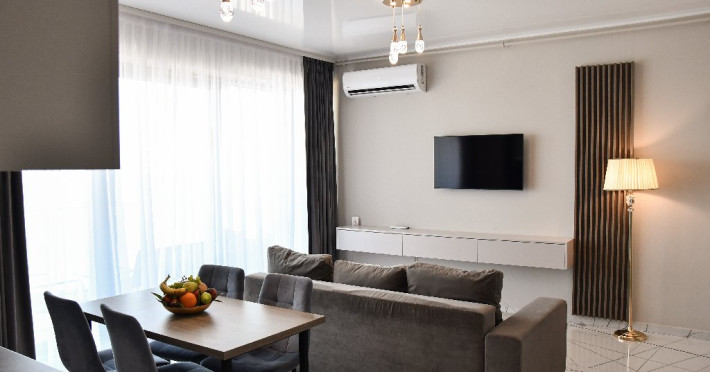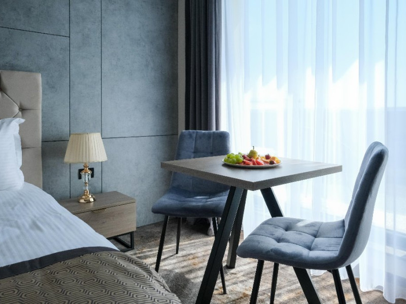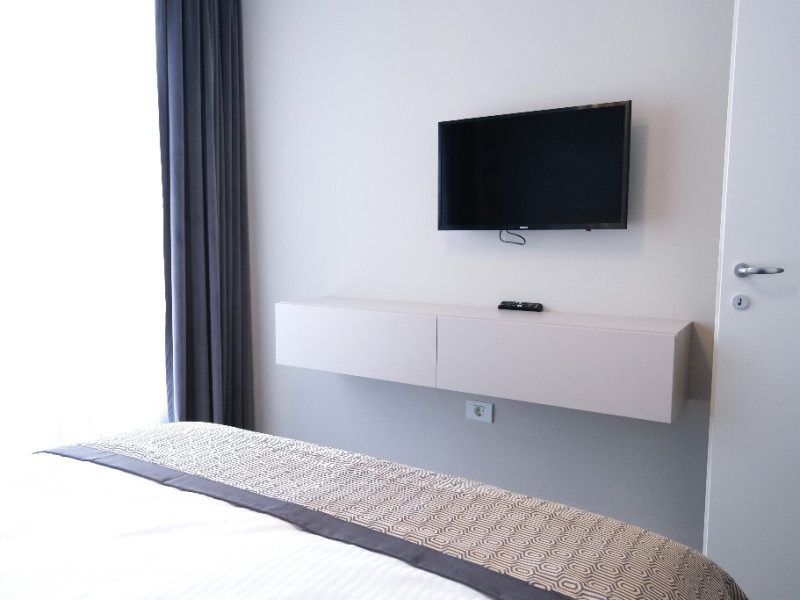 Apartamentele resort-ului sunt mobilate si utilate ultramodern, intrucat confortul este mereu pe primul loc in ceea ce ne priveste. Acestea se situeaza la etajele 9, 10 si 11, asadar vederea catre mare este una extrem de spectaculoasa. Astfel, living-ul dispune de o canapea extensibila, spatioasa (2 pers), zona de relaxare ( TV cu ecran plat, mobilier, spatii de depozitare), fiind open space cu bucataria utilata (plita electrica, chiuveta, frigider, tacamuri + vesela). Dormitorul dispune de un pat dublu matrimonial (2 m x 1,60 m) si o zona de relaxare (TV cu ecran plat, sezlong tapitat). Fiecare apartament/garsoniera dispune si de o terasa generoasa, dotata cu masuta si scaune, si bineinteles, vedere spectaculoasa asupra marii. Foarte important de retinut este faptul ca apartamentele se aloca in functie de disponibilitate la momentul sosirii. De asemenea, locul de parcare este gratuit, accesul se face pe baza de cartela de acces. NU GARANTAM sau REZERVAM un loc de parcare altundeva decat in parcarea hotelului special amenajata. In continuare va comunicam despre existenta unei taxe de statiune de 1% din valoarea totala a sejurului, taxa care este inclusa in tarif. APARTAMENTUL CU 3 CAMERE POATE ACOMODA MAXIM 6 PERSOANE ASTFEL: MAXIM 6 ADULTI SAU 4 ADULTI SI 2 COPII, CEL CU 2 CAMERE MAXIM 4 PERSOANE:4 ADULTI SAU 2 ADULTI SI 2 COPII, IAR GARSONIERA SI STUDIO-UL, REPREZENTAND DOAR O CAMERA CU PAT MATRIMONIAL, MAXIM 2 PERSOANE:1 ADULT SI 1 COPIL SAU 2 ADULTI. NU DISPUNEM DE PATURI SUPLIMENTARE SI NICI DE TWIN BEDS, TOATE PATURILE APARTAMENTELOR FIIND DUBLE, MATRIMONIALE. DE ASEMENEA, LIVING-UL DISPUNE DE CANAPEA EXTENSIBILA CE POATE ACOMODA 2 PERSOANE