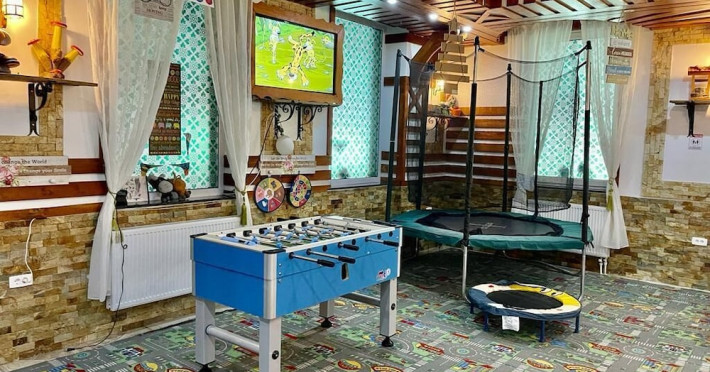 Located in Voronet, 1.9 miles from Voronet Monastery, Cabana Sura Getilor Arinis provides accommodations with a fitness center, free private parking, a garden and a shared lounge. Providing a restaurant, the property also features a terrace, as well as a sauna and a hot tub. The accommodation has a spa center, free WiFi and family rooms. At the hotel, every room has a closet. Complete with a private bathroom equipped with free toiletries, all guest rooms at Cabana Sura Getilor Arinis have a flat-screen TV and air conditioning, and some rooms will provide you with a balcony. All rooms will provide guests with a fridge. You can play pool and table tennis at this 3-star hotel, and the area is popular for skiing. Adventure Park Escalada is 1.9 miles from the accommodation, while Humor Monastery is 5.5 miles away. The nearest airport is Suceava International Airport, 33 miles from Cabana Sura Getilor Arinis.WiFi is available in the hotel rooms and is free of charge. Free private parking is available on site (reservation is not needed). Pets are not allowed. Children of all ages are allowed. Children 3 and under stay for free when using an existing bed. Children from 4 to 12 years old stay for 45Â lei per person, per night when using an existing bed. Children from 13 to 17 years old stay for 70Â lei per person, per night when using an existing bed. You havent added any cribs. You havent added any extra beds. Additional fees are not calculated automatically in the total cost and will have to be paid for separately during your stay.Checkin Time: 14:00Checkin End Time: 22:00Checkout From: 08:00Checkout End Time: 12:00