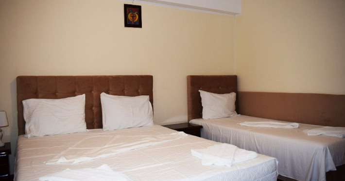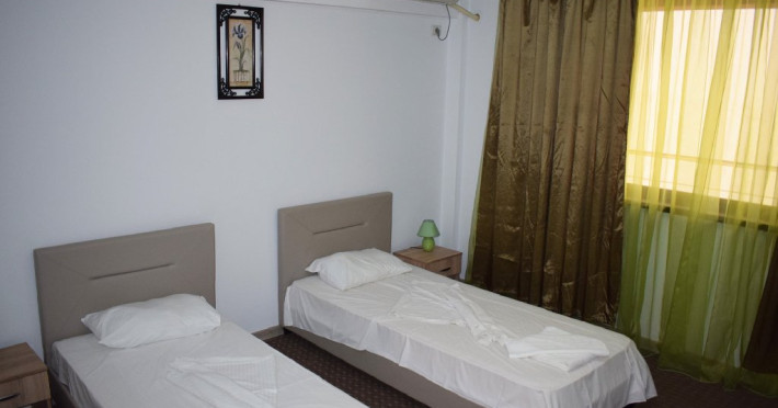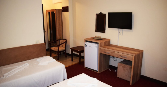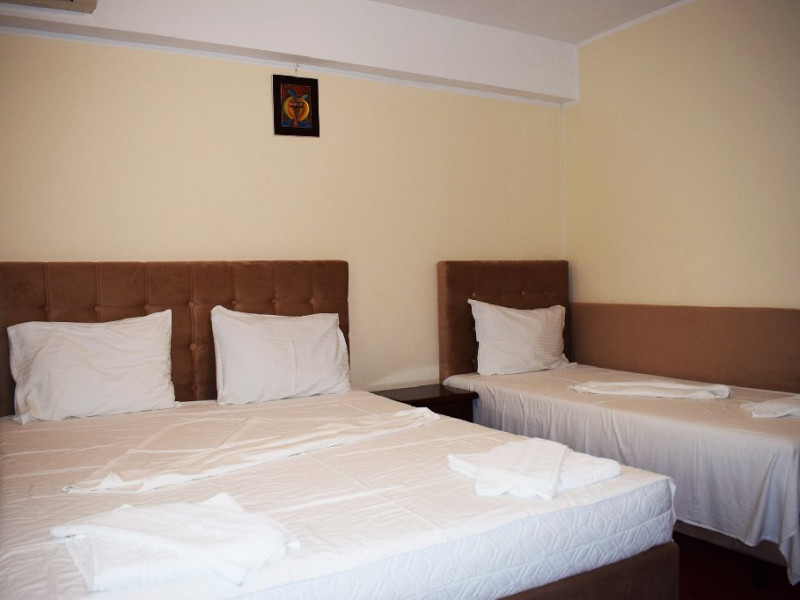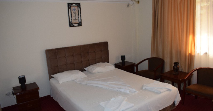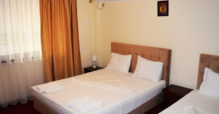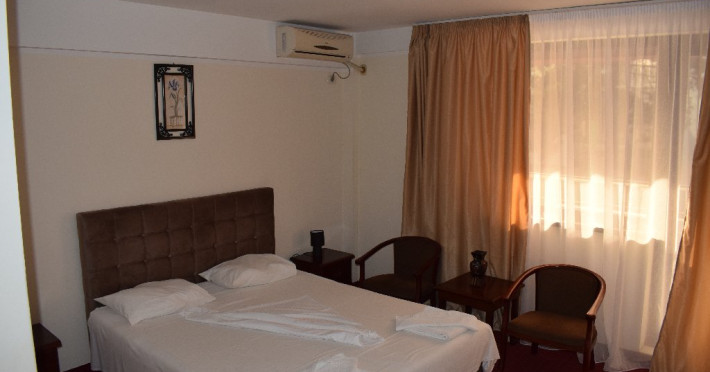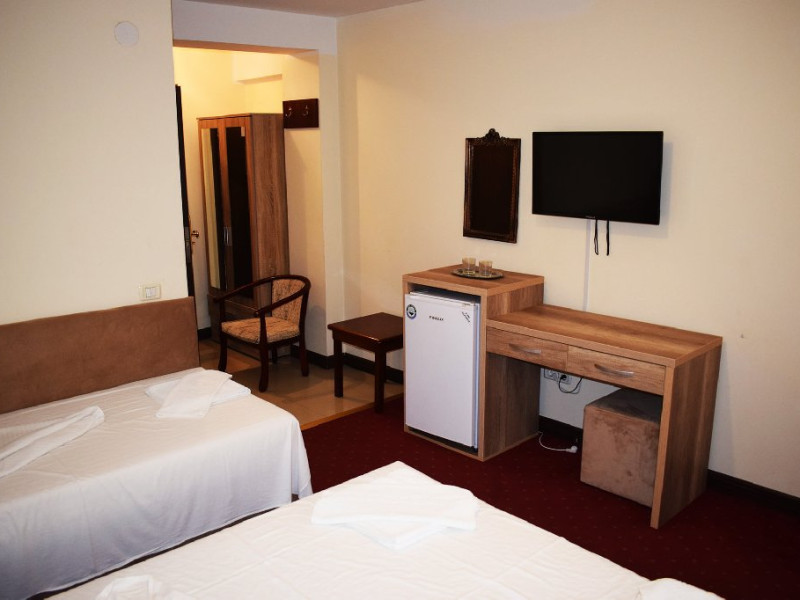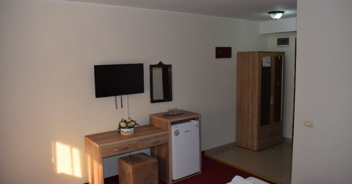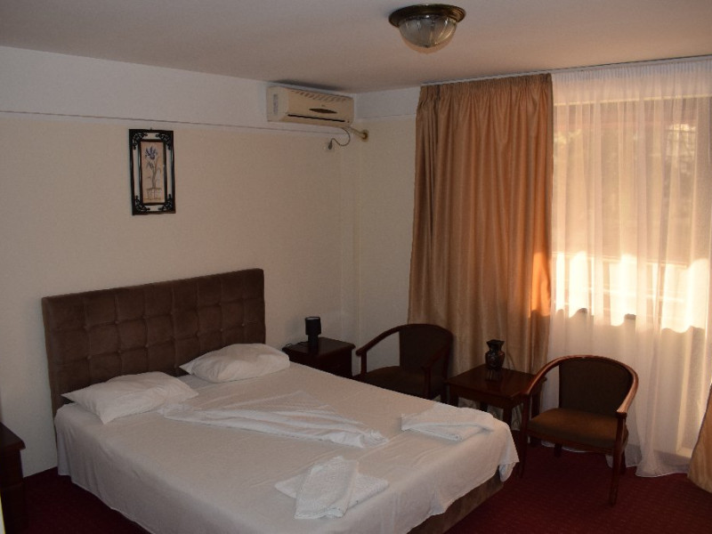 DESCRIERE CAMERE Numar total camere: 36 Camere Duble Economy: 3 (situate la parter, fara balcon, pat matrimonial) Camere Duble Matrimoniale: 23 (situate la etaj) Camere Duble Twin: 1 (situata la etaj) Camere Triple: 9 (situate la etaj) Dotari camere: TV, AC, frigider, internet wireless, mocheta, balcon- la camerele de la etaj, baie proprie, dotata cu cabina de dus/ cada, uscator de par.