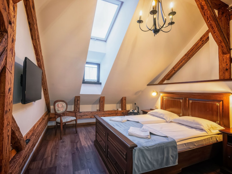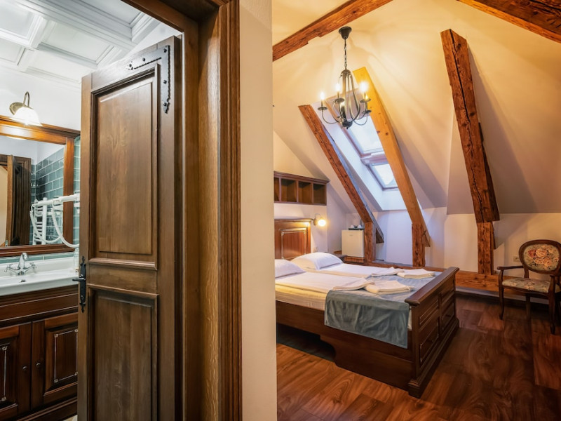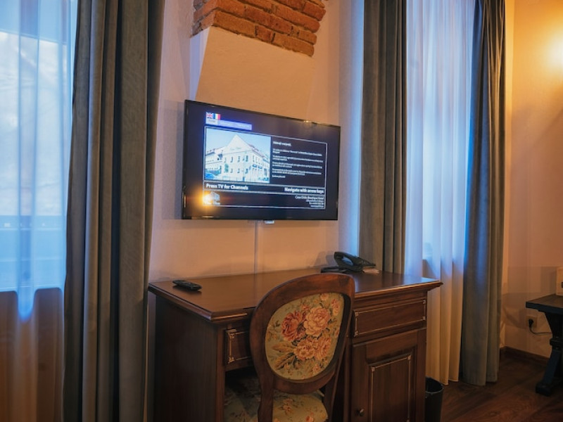 Located in Brasov, 0.3 mi from Strada Sforii and 328 feet from Council Square, HOTEL BOUTIQUE CASA CHITIC -HOTEL AND RESTAURANT Str Johann Gott nr7 features a terrace with views of the Tampa Mountain. The accommodations features room service and free WiFi. At the hotel, each room comes with a desk. Each room has a private bathroom with free toiletries and a hair dryer. At HOTEL BOUTIQUE CASA CHITIC -HOTEL AND RESTAURANT Str Johann Gott nr7 all rooms come with a flat-screen TV with cable channels. A buffet breakfast is available each morning at the accommodations. The newly opened structure of the hotel is just 66 feet away from HOTEL BOUTIQUE CASA CHITIC -HOTEL AND RESTAURANT Str Johann Gott nr7, and it is specially designed to serve business travelers. Popular points of interest near the accommodations include Faculty of Medicine -Transylvania University of Brasov, Tampa Cable Car and Brasov Neolog Synagogue.WiFi is available in all areas and is free of charge. Public parking is available at a location nearby (reservation is not possible) and costs RON 24 per day. Pets are not allowed. Children of all ages are allowed. Children 2 and under stay for free when using an available crib. Children from 6 to 10 years old stay for 100Â lei per person, per night when using an available extra bed. Any type of extra bed or crib is upon request and needs to be confirmed by management. Additional fees are not calculated automatically in the total cost and will have to be paid for separately during your stay.Checkin Time: 14:00Checkin End Time: 23:30Checkout End Time: 11:00Hotel important information: Please inform HOTEL BOUTIQUE CASA CHITIC -HOTEL AND RESTAURANT Str Johann Gott nr7 of your expected arrival time in advance. You can use the Special Requests box when booking, or contact the property directly using the contact details in your confirmation. In response to the coronavirus (COVID-19), additional safety and sanitation measures are in effect at this property. Due to the coronavirus (COVID-19), this property is taking steps to protect the safety of guests and staff. Certain services and amenities may be reduced or unavailable as a result. Due to the coronavirus (COVID-19), wearing a face mask is mandatory in all indoor common areas. Due to coronavirus (COVID-19), this property adheres to strict physical distancing measures.