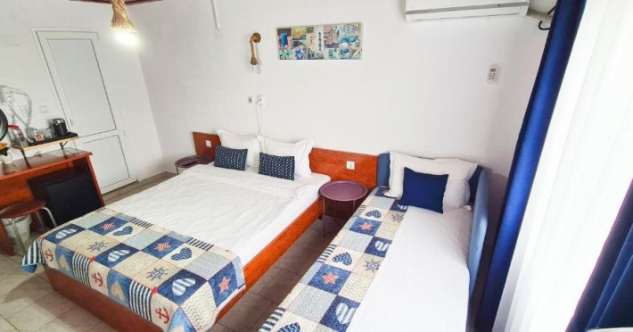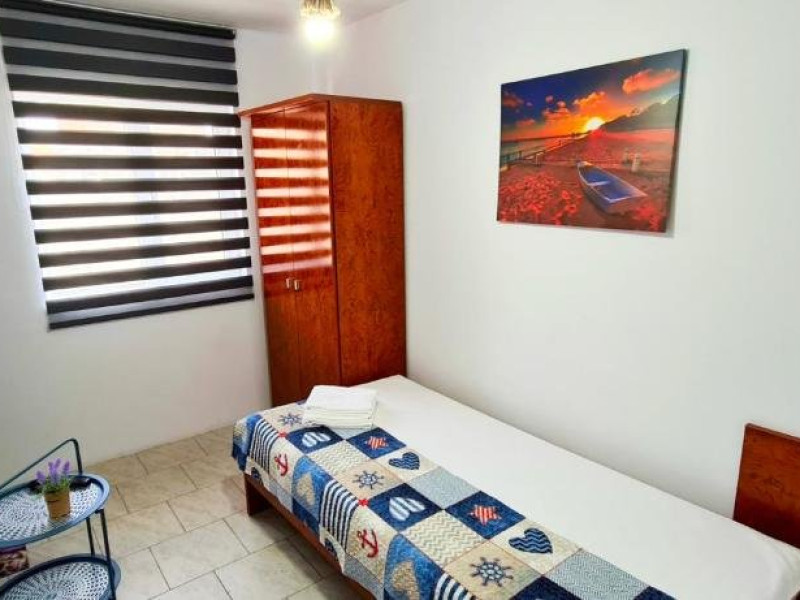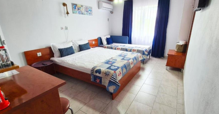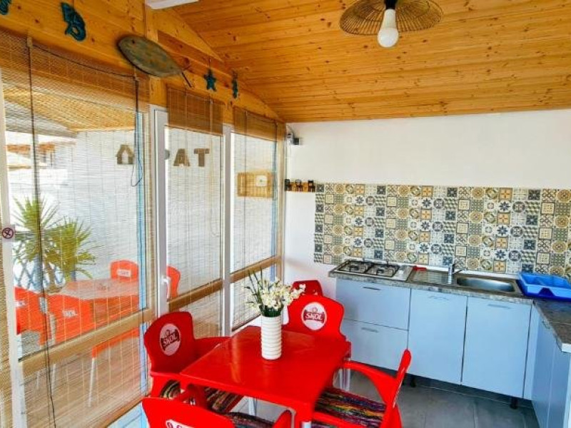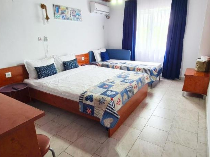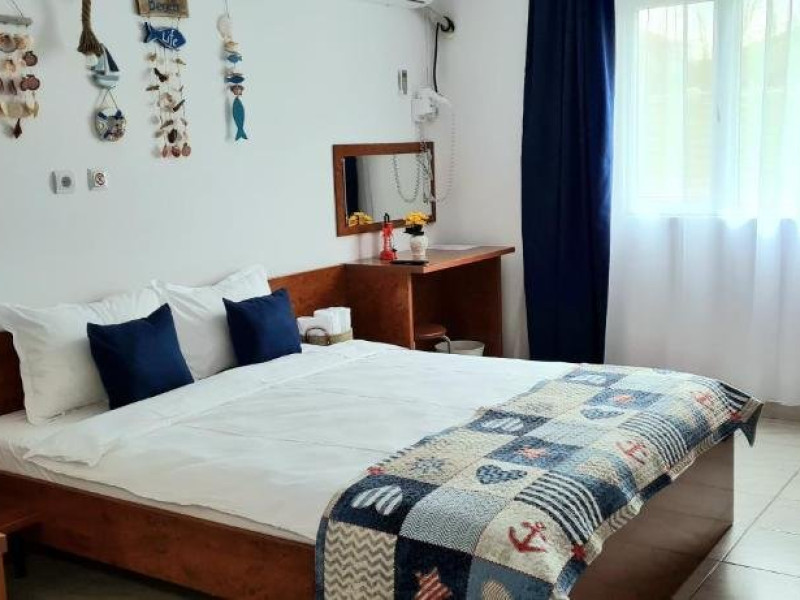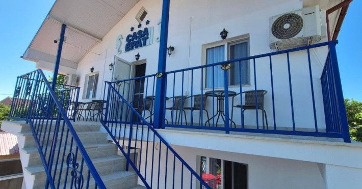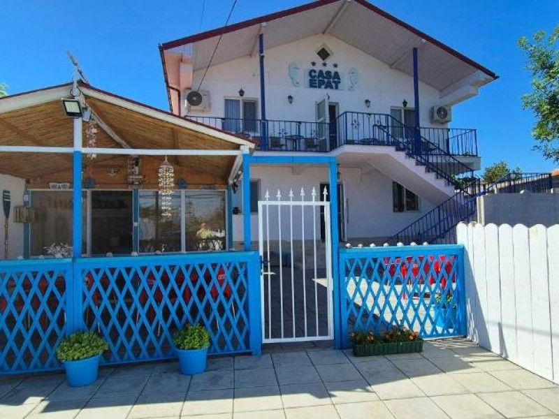 Ideal pentru familii Bucurati-va de o experienta de neuitat lacasa noastra de vacanta, amplasata in inima localitatii, la doar cativa pasi deplaja din 2 Mai si la doar 3 km de atmosfera vibranta din Vama Veche. Oferim ovarietate de optiuni de cazare: 4 camere duble elegante, cu paturimatrimoniale king size. 3 camere triple spatioase, cu un pat matrimonial king size si unul single. 1 studio confortabil, dotat cu un pat dublu matrimonial king size si 2 paturisingle. Fiecare camera este amenajata cu grija, oferind bai private, internet de inaltaviteza, aer conditionat, minibar, uscator de par, TV LED si produse de igienade calitate. Relaxati-va in foisorul nostru, bucurati-va de o bucatarie de varacomplet utilata, savurati gratarul si beneficiati de 6-7 locuri de parcare, infunctie de disponibilitate. Plaja este la doar 5 minute de plimbare, facandu-nelocatia perfecta pentru grupuri sau familii cu copii in cautare de distractiesi confort.