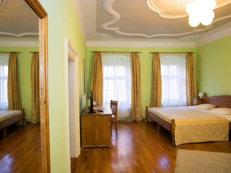 Casa Luxemburg is located in Sibiu. This hotel is located in the center of the city. Before going to bed, you can walk around the main landmarks of the city.Casa Luxemburg is located in Sibiu. This hotel is located in the center of the city. Before going to bed, you can walk around the main landmarks of the city.You can stop by the bar. Taste the local cuisine and have a rest in the restaurant. If you cant live without coffee, drop by the cafe. Free Wi-Fi is available on the territory. Ask for more information when checking in.If you travel by car, theres a parking zone. For business meetings, there is a conference hall. To book an excursion, consult the tour assistance desk of the hotel. For the free movement around the city, the hotel offers a transfer for you.Additional services that the hotel offers to its guests: a laundry, dry cleaning, ironing, press, car rental, a safe-deposit box and a concierge. The staff of the hotel will be happy to talk to you in English, Spanish and German.You can stop by the bar. Taste the local cuisine and have a rest in the restaurant. If you cant live without coffee, drop by the cafe. Free Wi-Fi is available on the territory. Ask for more information when checking in.If you travel by car, theres a parking zone. For business meetings, there is a conference hall. To book an excursion, consult the tour assistance desk of the hotel. For the free movement around the city, the hotel offers a transfer for you.Additional services that the hotel offers to its guests: a laundry, dry cleaning, ironing, press, car rental, a safe-deposit box and a concierge. The staff of the hotel will be happy to talk to you in English, Spanish and German.The room is warmly decorated and has everything you need to have a rest after a long eventful day. There is a TV, a mini-bar and slippers. Please note that the listed services may not be available in all the rooms.The room is warmly decorated and has everything you need to have a rest after a long eventful day. There is a TV, a mini-bar and slippers. Please note that the listed services may not be available in all the rooms..RON not included 10 per guest per night off side