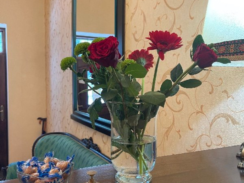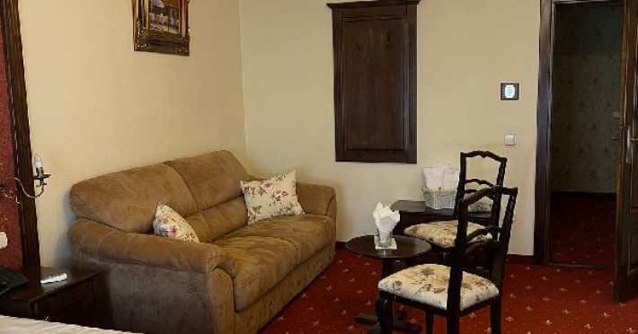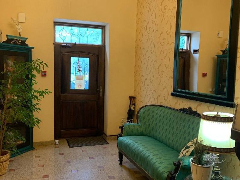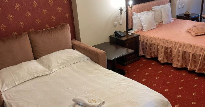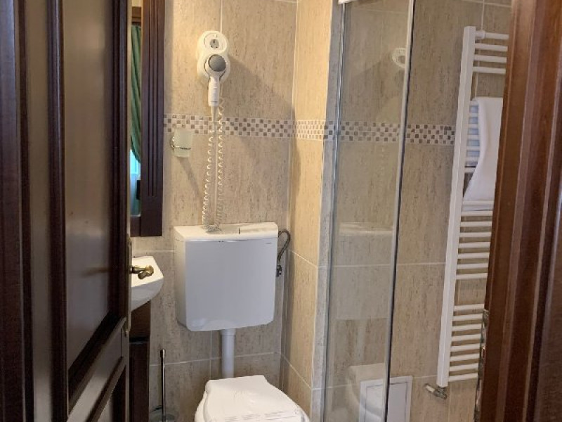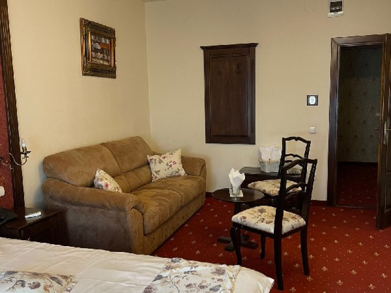 DESCRIERE CAMERE Tipologia camerelor - 1 camera dubla superioara cu vedere catre curte - 1 camera dubla superioara cu vedere catre parc (pat dublu si un fotoliu extensibil) - 1 camera deluxe cu vedere catre parc (pat dublu si o canapea extensibila )-camera family - 1 camera dubla superioara mansarda (pat dublu si o canapea extensibila )-camera family - 1 camera dubla economy-mansarda - 1 Camera single-mansarda Toate camerele sunt dotate cu baie proprie, tv, frigider, aer conditionat, prosoape, papuci, produse de igiena premium. In pretul camerei este inclus un bufet de cafea, ceai, fursecuri, croisante si chec.