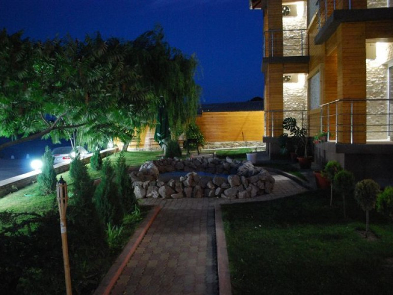 Localizare: Pensiunea Casa Teo ****, situata in Delta Dunarii pe malul drept al bratului Sf. Gheorghe, la numai 29 km. de municipiul Tulcea in Loc. Mahmudia. Dotari si facilitati: Va sta la dispozitie cu 21 de spatii de cazare dotate cu bai moderne, aer conditionat, TV cu receptie prin satelit, frigobar, toate acestea stralucind de curatenie. Restaurant cu 50 de locuri unde se pot servii atat traditionalele bucate pescaresti cat si preparate traditionale Romanesti Casa Teo**** mai are in dotare o sala de conferinte cu o capacitate de 32 de locuri. Tarifele nu includ mic dejun si nici taxa hoteliera din valoarea totala a sejurului ce va fi incasata la receptie. Tarifele nu sunt valabile in perioada Targurilor si a Sarbatorilor ( Paste, Craciun, Revelion) Facilitati copii: Copii sub 7 ani au gratuitate la cazare. Agrement: Casa Teo**** are si o mica flota de agrement, compusa dintr-un vaporas cu o capacitate de 12 pers, obarca Laguna de 4 pers., o barca Romcraft de 4 pers si o barca Mano Marine de 6 persoane, toate conduse de personal calificat ce asteapta sa va prezinte mirifica Delta a Dunarii. O excursie in Delta Dunarii dureaza cel putin 3 ore pentru a putea vizita colonii de pelicani, lebede, cormorani, califari, nuferi albi si galbeni ( contra cost).
