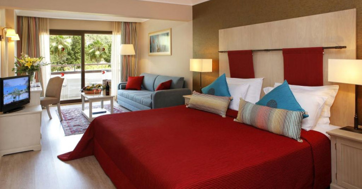Dotari cameraToate camerele sunt spatioase si sunt echipate cu aer conditionat, TV satelit, mini- frigider, telefon, seif(contra-cost), grup sanitar cu articole de toaleta si uscator de par, balcon mobilat oferind frumoase privelisti catre gradini sau piscina.La cerere se pot aduce in camera fierul si masa de calcat iar accesul la internet wi-fi este gratuit.Camera dubla deluxe este ideala pentru cupluri iar dupa superior poate caza familii cu maxim 3 persoane fiind dotata de asemenea si cu canapea extensibila.