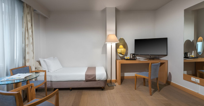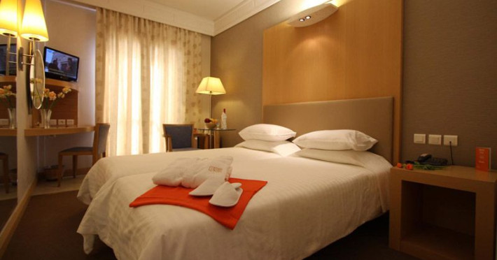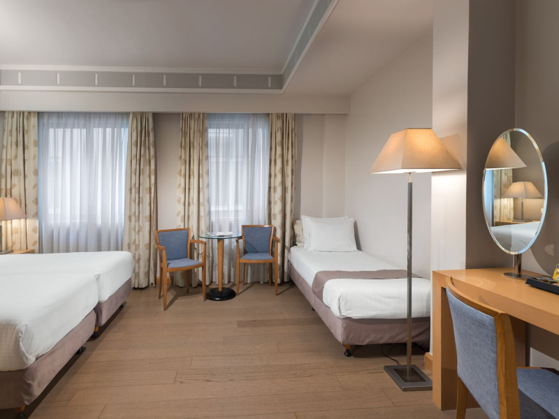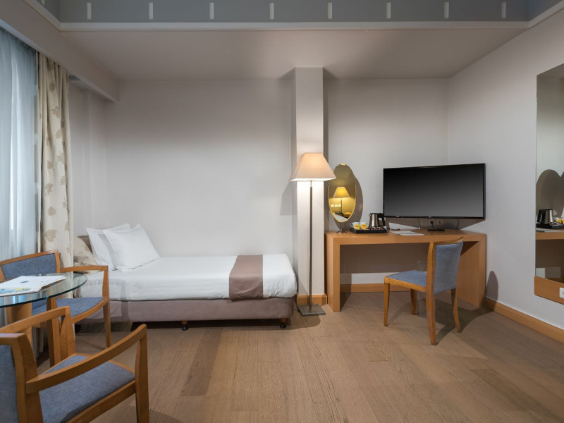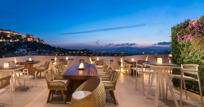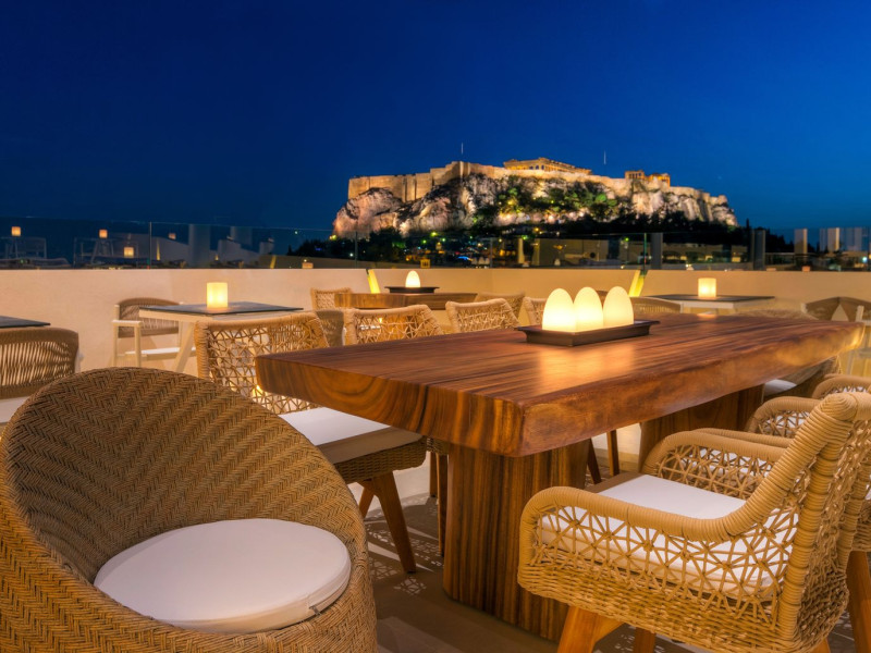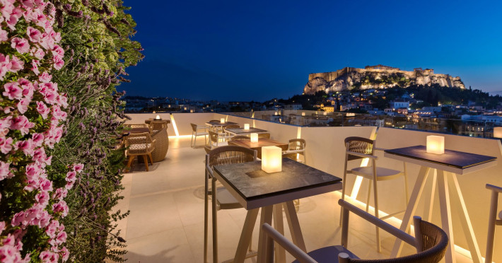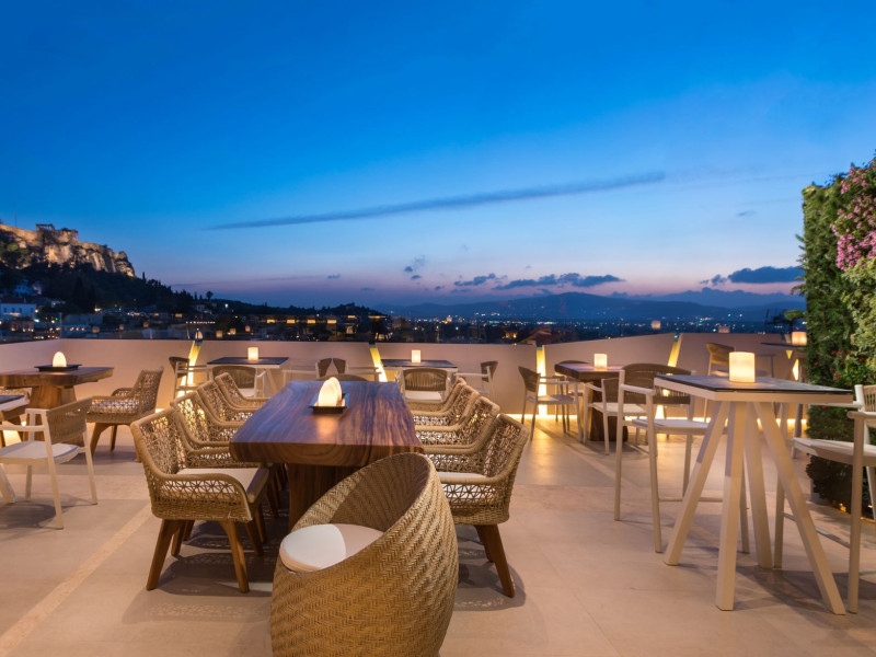 Central Hotel is centrally located in the heart of the Old City of Plaka and the Acropolis, only 200 m. away from the Constitution square, the citys business district. Enjoy a brief business trip or discover the Ancient Greek civilization in the area around the hotel and relax in our completely renovated rooms with the stunning view to the Acropolis. All rooms are designed to meet the highest standards of accommodation and feature upscale furnishing and decoration. Thea Terrace Bar on the roof top of Central Athens Hotel offers a magnificent view âonly a breath awayâ to the Acropolis and the picturesque city center. Indulge to this unforgettable experience and travel through time overlooking to one of the most well known world cultural heritage monuments, combine tradition with spirit, history with evolution while enjoying your coffee, drink or a delicious snack.