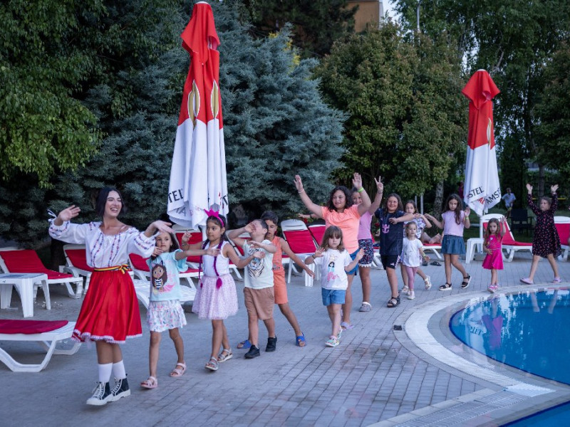 Observatii: Nu se accepta animale de companie. Entertainment: Copii: 2 locuri de joaca amenajate, activitati: concursuri, spectacole, discoteca, karaoke, teatru de papusi, desen, face painting, fitness. Adulti: muzica live / formatie, discoteca in aer liber, spectacole cu ansambluri folclorice traditionale Fitness/Wellness/Sport: piscina in aer liber -pentru adulti si copii. Piscina principala a complexului are aproximativ 600 mp, sezlonguri, iar piscina pentru copii are aproximativ 20 mp; Jacuzzi in aer liber, aproximativ 12 mp. Sali de conferinta: 2 - sala de conferinte Roxana capacitate 75 locuri, sala modulara Mara 250 locuri sau se poate imparti in 2 sali independente (2X125 locuri), dotate cu echipament specific: video-proiector, ecran , flipchart, sonorizare, internet wireless, fax; servicii de receptie participanti, coordonare eveniment, management eveniment, rezervari transport.