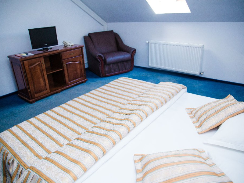 Hotel Voievod 1: 77 locuri in 33 camere duble (23 matrimoniale, 6 twin si 4 camere tip suite) dotate cu baie proprie,mini-bar, internet wireless si prin cablu, telefon, TV, seif, balcon. Camerele matrimoniale de la mansarda au si fotoliu extensibil.