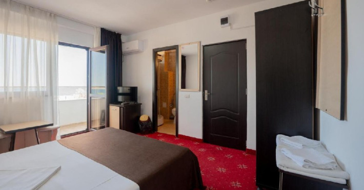 Dotari camere: Toate camerele sunt dotate cu pat matrimonial (160x200) sau doua paturi twin, baie proprie cu cabina de dus, aer conditionat, internet wireless, Tv/cablu, mobilier nou, racitor si balcon (exceptand camerele de la demisol si parter care nu au balcon).