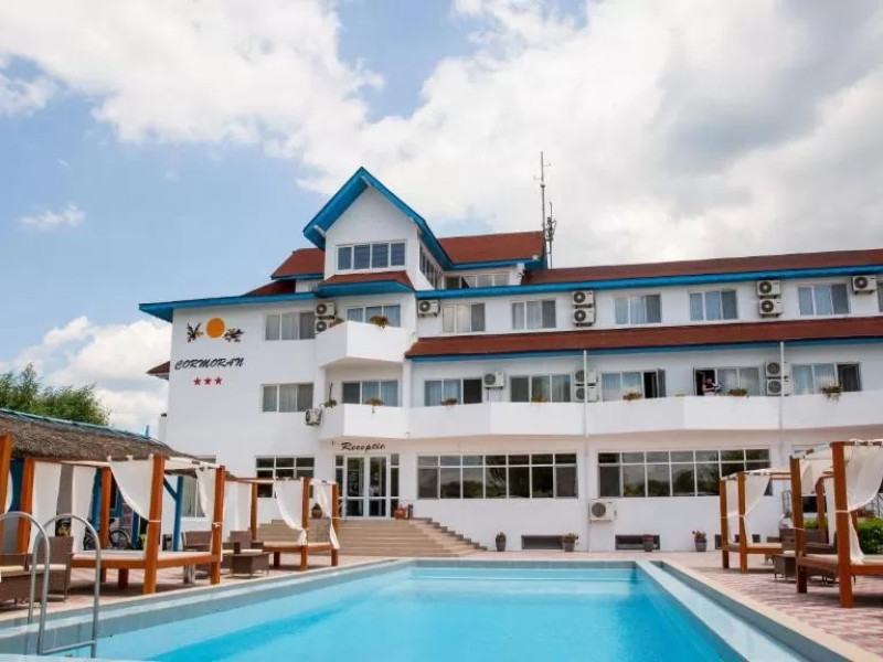 Cormoran Resort este situat in inima Deltei Dunarii, in satul Uzlina, pe bratul Sf Gheorghe. Facilitati hotel: 22 camere twin, 8 camere cu pat matrimonial, 4 triple si 2 garsoniere (in total 36 de camere), 2 restaurante, bar, club, 5 sali de conferinta(25 - 250 locuri), sala de fitness, sauna, biliard, tenis de masa, 2 piscine in aer liber, terenuri de sport (tenis, volei, fotbal, baschet), acces gratuit WiFi, biciclete disponibile gratuit, magazin de suveniruri/cadouri, serviciu de calcatorie, spalatorie, loc de joaca pentru copii, tenis de masa, gratar, terasa, gradina, pescuit, zona pentru fumatori, aer conditionat, incalzire, punct de prim ajutor, magazin cu produse de stricta necesitate(la receptia Hotelului), spatiu andocare. Facilitati camere: bai proprii, aer conditionat, televizor, telefon; garsonierele - jacuzzi; vila Tip B â apartamentele au scara interioara, sufragerie si doua dormitoare, aer conditionat, frigider, 2 bai, terasa; Vila Tip A â fiecare vila are 4 camere cu intrare separata, dotate cu aer conditionat, baie, terasa, televizor; Pensiune â fiecare camera are televizor,baie, aer conditionat si balcon.