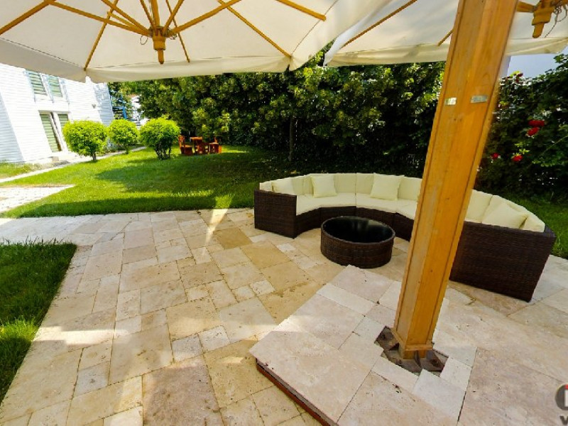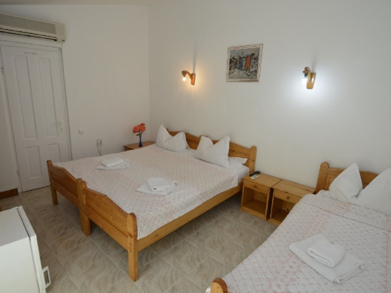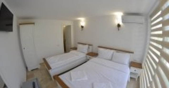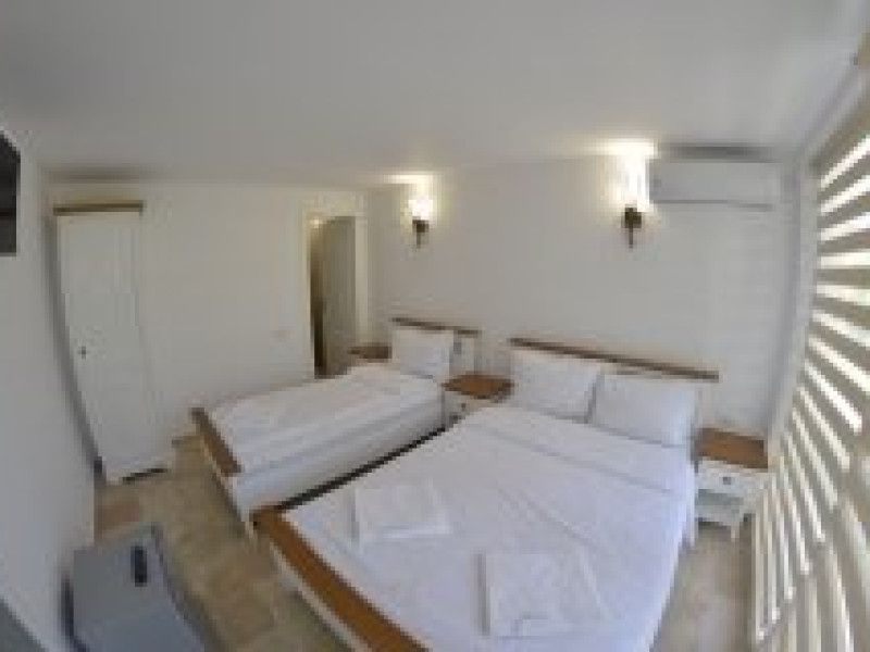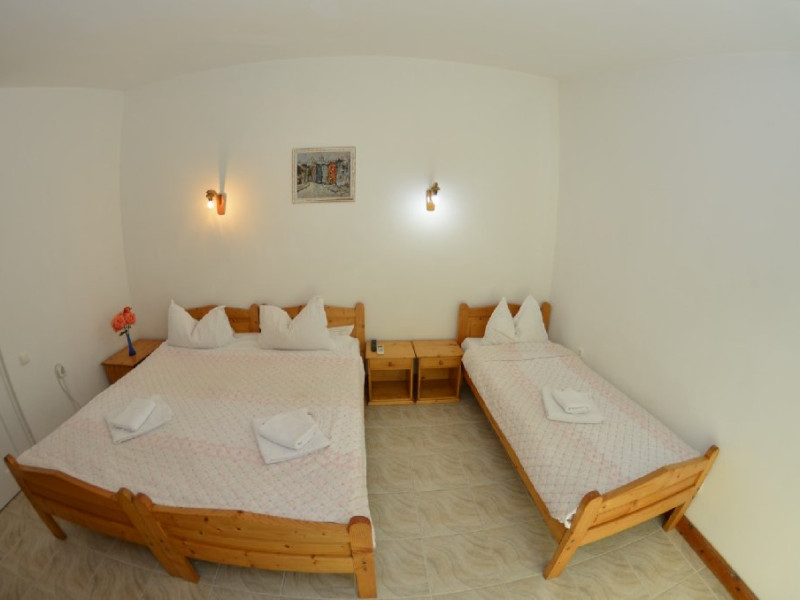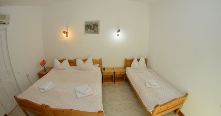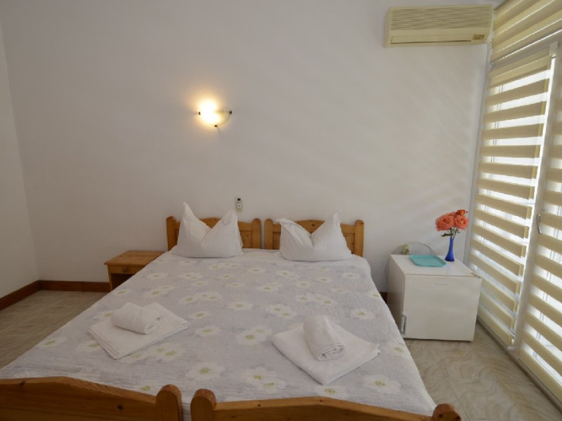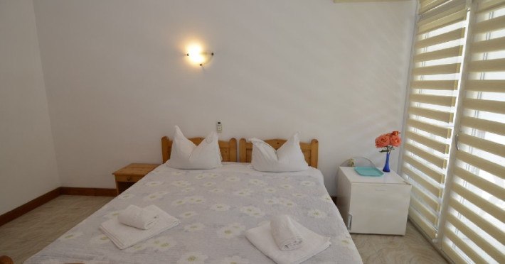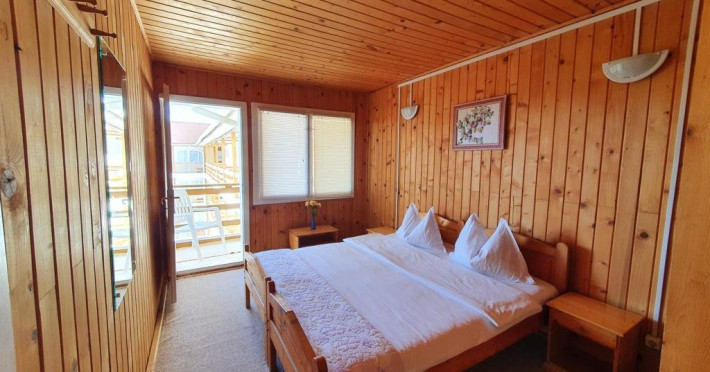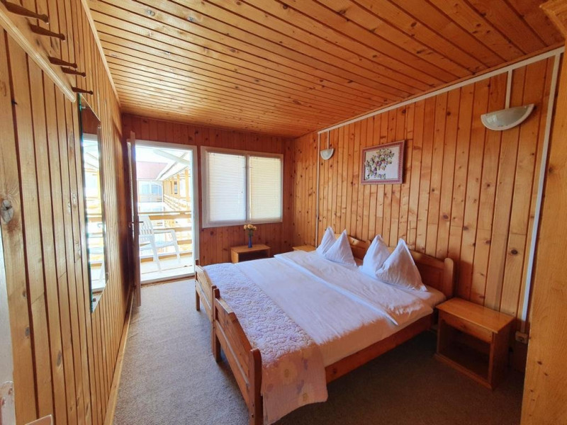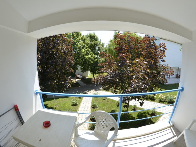 Dotari camere Camerele din Vilele Alfa, Beta si Gamma dispun de aer condiLLionat, baie cu duL, Tv, minibar, balcon/teras, fier de clcat, fierbtor pentru apa, chicinet, cuptor cu microunde, frigider, zon de relaxare ,maLin de splat . Camerele duble(15 mp) au in dotare un pat matrimonial iar camerele triple (20 mp) au 3 paturi de 1 persoana.