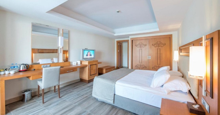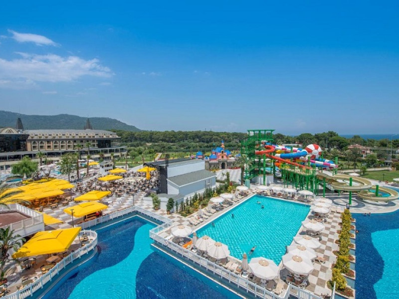 Facilitati hotel: Deschis in anul 2007 cu o suprafata de 100.000 mp. Hotelul dispune de parc acvatic, piscina, restaurant, bar, animatie, centru SPA, lift, teren de tenis, spectacole, parc de distractii, fitness, volei pe plaja.