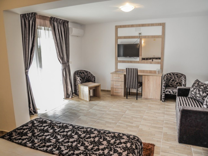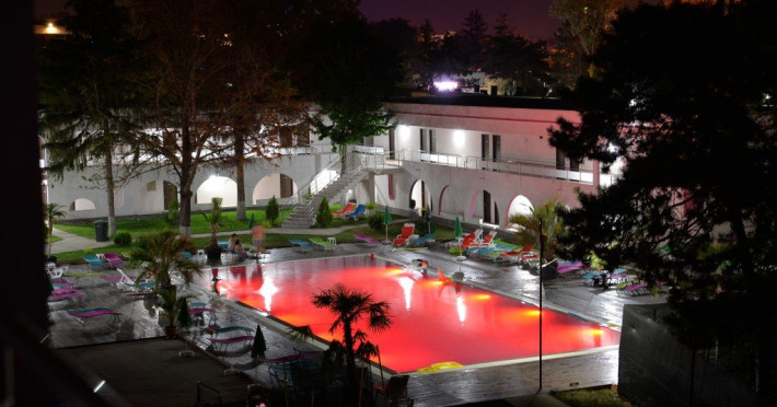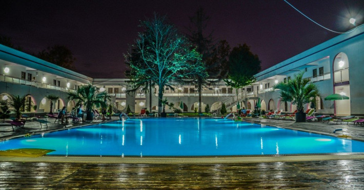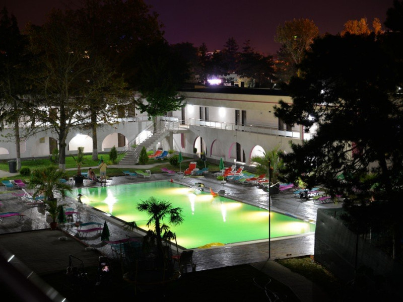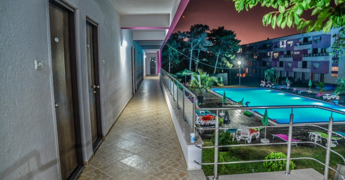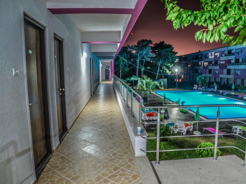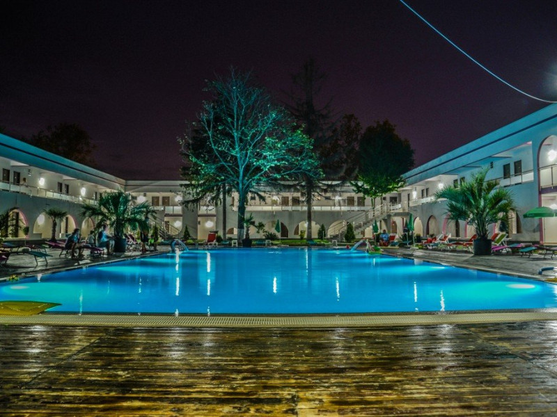 Designul modern al complexului este intregit deo piscina de mari dimensiuni dar si de locuri de joaca pentru cei mici,restaurant, baruri, sala de conferinte si parcare.
