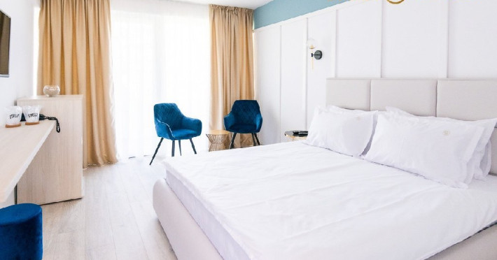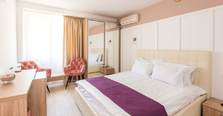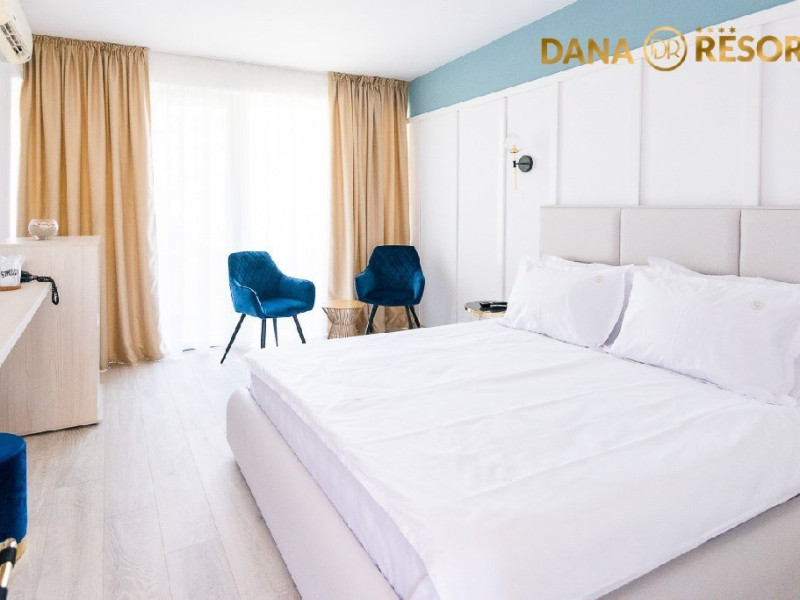 Hotel Dana 4 stele este situat la 500 de metri de plaja si are o arhitectura diferita fata de restul unitatilor de cazare din zona, fiind alcatuit dintr-un corp principal si mai multe vile cu aspect mediteranean . Hotelul este inconjurat de o gradina botanica cu suprafata de 15000 mp, in care coexista peste 200 de specii diferite de plante. Va informam ca incepand cu sezonul 2021 se va incasa la check-in taxa de statiune, in valoare de 5 lei/persoana/zi, conform HCL 283/23.12.2020. Vor fi taxate toate persoanele cu varsta de 18 ani impliniti. Dotari si servicii Hotel Dana dispune de camere duble de 3***, camere duble de 4**** si apartamente, distribuite atat in corpul central, cat si in vile. Camerele si apartamentele au fost modernizate si reamenajate in 2021 si sunt dotate cu mobilier nou, aer conditionat, minibar, seif si televizor. Restaurantul Hotelului Dana are o terasa cu gradina si serveste specialitati romanesti. Complexul Dana mai dispune de piscina descoperita cu acces gratuit si locuri de joaca pentru copii. Piscina este locul preferat de turistii care cauta locul perfect de relaxare in vacanta. Chiar daca plaja atrage turistii ca un magnet inca de la primele raze de soare, mirosul marii impletit cu cel al plantelor din resort fac ca o mare parte dintre acestia sa prefere sezlongurile de la piscina si umbra brazilor din apropiere. Terasa in aer liber este locul preferat pentru servirea mesei inca de la primele ore ale diminetii, la micul dejun, si terminand cu cinele tarzii in compania muzicii bune si veseliei specifice vacantelor la mare. Restaurantul cu specific international, pizzeria italiana si barul se imbina perfect in peisajul resortului, conducand turistii pe trasee gastronomice interesante. WiFi ul acopera intregul resort fiind un companion perfect turistului modern. Familiile cu copii se pot bucura de spatiile verzi generoase in care cei mici poti sa-si consume in siguranta energia, locurile de joaca pentru diferite grupe de varsta si piscina speciala dedicata celor mai mici dintre turisti fiind locurile preferate de acestia pentru distractia in aer liber. Pozitia excelenta a resortului, aflat in inima statiunii Venus, face ca plimbarile de seara prin statiune sau pe plaja sa fie gustate din plin de turistii dornici de distractie. De ce Dana Resort este locul perfect de cazare in sezonul 2022 e Conditiile actuale de distantare sociala obliga majoritatea hotelurilor sa impuna o multime de constrangeri pentru asigurarea respectarii masurilor impuse de autoritati. Dana Resort reuseste prin structura sa indeplineasca toate aceste conditii fara a impune restrictii majore turistilor aflati in vacanta.Structura complexului este parter si un etaj, toate intrarile in camere fiind din exterior, eliminand astfel contactul dintre turisti in spatiile comune inchise (holuri, lifturi). Terasa in aer liber este locul perfect pentru savurarea preparatelor pregatite de chefii Dana Resort. Suprafetele generoase asigura spatiul necesar unei distantari relaxate astfel incat vacanta la mare sa fie una plina de momente frumoase. Dana Resort in cifre si nu numai: a? 15.000 mp de gradina luxurianta a? 112 unitati de cazare (camere duble, camere family, camere duplex, apartamente) a? Parter cu 1 etaj - regim maxim de inaltime a? 1 restaurant a la carte a? 1 pizzerie a? 2 baruri a? 1 piscina pentru adulti a? 1 piscina pentru copii a? 1 loc de joaca pentru copii a? Camere modernizate in 2021 - parchet nou, mobila noua, televizoare noi a? Toate camerele dispun de aer conditionat, minibar, casete de valori Parcare contra-cost in limita locurilor disponibile -> 15 lei/ zi Servicii masa MASA: restaurant propriu mediteranean; Mic dejun - bufet suedez Pranz si cina - in sistem a la carte ( bon valoric) PACHETELE CU DEMIPENSIUNE SI PENSIUNE COMPLETA NU INCLUD MASA PENTRU COPIII CU VARSTA INTRE 0 - 4.99 ANI, ACESTEA INCLUZAND DOAR MICUL DEJUN. Dotari camere Camerele de 3* au intre 16 si 19 mp, iar la cele de 4* suprafata variaza intre 23 si 28 mp. Toate spatiile de cazare sunt dotate cu: LCD, telefon, aer conditionat, minibar, seif, uscator de par, acces la internet. Camerele sunt situate atat in corpul principal, cat si in cele 4 vile din cadrul resortului. Acestea sunt dispuse astfel: Camere in hotel: hotelul are doar 5 camere la etajul 2, restul de 79 camere sunt situate la parter sau etajul 1 Camere duble 4* cu balcon- MODERNIZATE, au 1 pat matrimonial, AC, TV, frigider; Capacitate maxima 2 adulti + 2 copii (0-12 ani) / 2 adulti + 2 copii (1 copil maxim 5 ani si 1 copil maxim 18 ani). Camere duble 4* fara balcon- MODERNIZATE, au 1 pat matrimonial, AC, TV, frigider; Capacitate maxima 2 adulti + 2 copii (0-12 ani) / 2 adulti + 2 copii (1 copil maxim 5 ani si 1 copil maxim 18 ani). Camere family cu balcon - MODERNIZATE, au 1 pat matrimonial + 1 canapea extensibila, AC in living, TV, frigider; Capacitate maxima: 2 adulti + 2 copii (0-18 ani)/ 3 adulti + 1 copil (0-5 ani) Camere family fara balcon- MODERNIZATE, au 1 pat matrimonial + 1 canapea extensibila si ofera posibilitatea de a usca prosoapele si costumele de baie in exterior, AC in living, TV, frigider; Capacitate maxima: 2 adulti + 2 copii (0-18 ani)/ 3 adulti + 1 copil (0-5 ani). Camere in vile: parter + 1 etajul 1. Toate unitatile de cazare, din vile, au balcon sau terasa! Apartamente 4* - sunt formate din dormitor + living cu canapea extensibila. Atat in dormitor cat si in living exista TV, iar in living exista AC si frigider si balcon. In living exista posibilitate adaugarii unui pat suplimentar cotra cost. Capacitate maxima: 4 adulti + 1 copil (