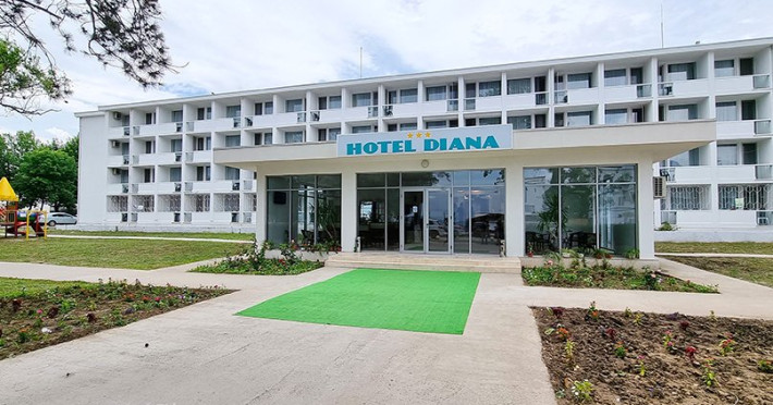 Situat pe faleza Eforie Nord, Hotel Diana va ofera un numar de 127 camere din care, 69 camere duble cu balcon, 51 camere duble fara balcon si 7 camere duble family. Toate camerele sunt dotate cu TV, racitor, aer conditionat, baie cu dus, telefon. Servicii incluse: 2 sezlonguri + 1 umbrela la plaja Parcare in limita disponibilitatilor. Camera de bagaje. Seif la receptie.