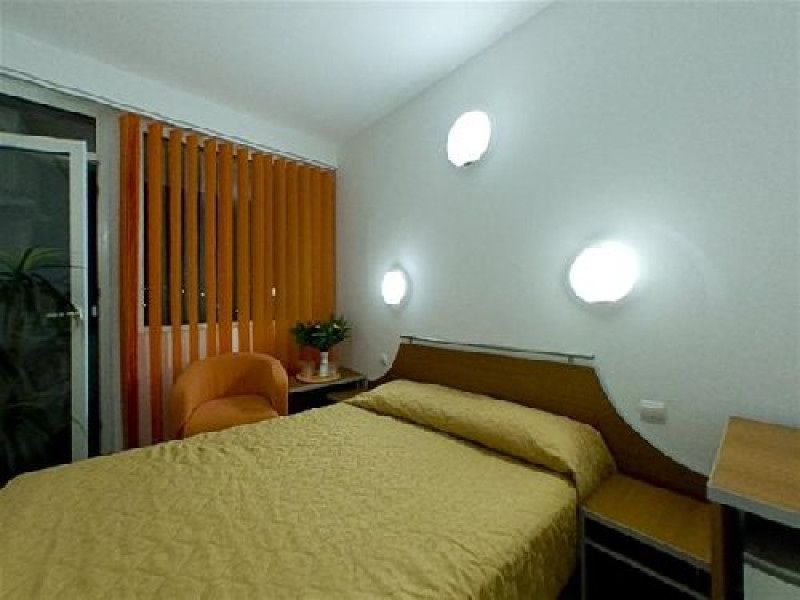 Hotelul este situat in partea de sud a statiunii Mamaia, in vecinatatea parcului de distractii Aqua Magic ,la numai 50 m de plaja. Hotelul este renovat complet. Facilitati masa: restaurant Aurora sau Azur in sistem bonuri valorice. Hotelul are 4 etaje, seif, bar cu terasa, parcare contra cost in limita locurilor existente cu 63 de locuri; 60 camere cu pat matrimonial, 61 camere cu 2 paturi, 9 apartamente. Nu se accepta animale de companie. Camerele sunt dotate cu moblier nou, TV LCD, uscator par, seif, telefon, AC, racitor, baie (renovata) cu cada, fotolii, masuta, balcon la etaj, pardoseala din gresie; apartamente: living (canapea extensibila), dormitor (pat matrimonial). TARIFE COPII (in camera cu 2 adulti): Cameramatrimoniala (pat-1.40/1.90) - se pot caza doar 2 persoane adulte fara copii. Camera cu 2 paturi: - un copil intre 0 - 12 ani beneficiaza de cazare gratuita; - pentru al doilea copil eentre 0 - 12 ani se va achita obligatoriu un pat pliant een valoare de 50% dintr-un loc; - pentru copiii cu varsta intre 12- 16 ani se va achita obligatoriu 50% din tariful unui loc. Un adult si un copil achita camera integral. In apartament se recomanda cazarea a 2 adulti si 2 copii sau 3 adulti si un copil.