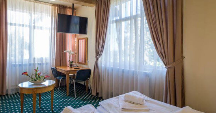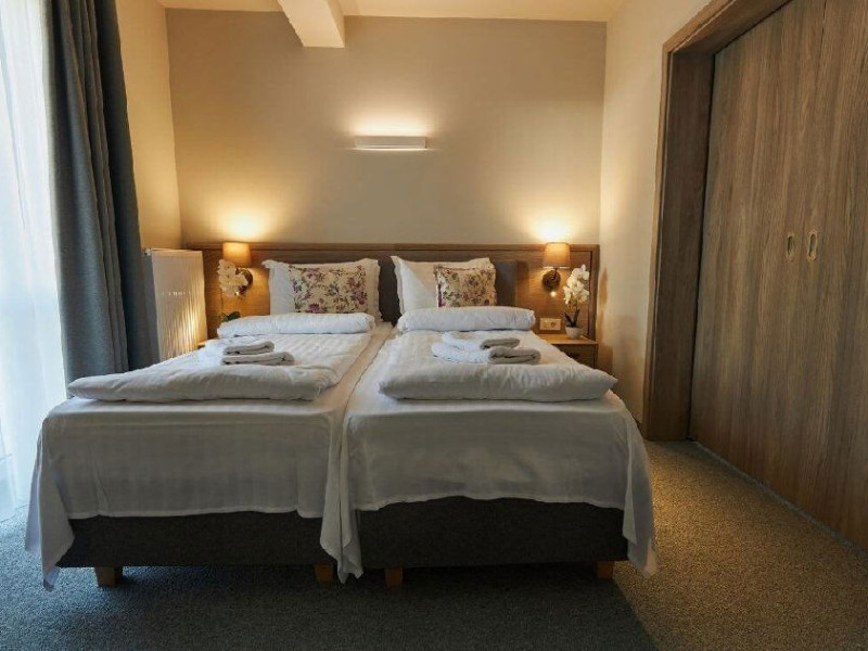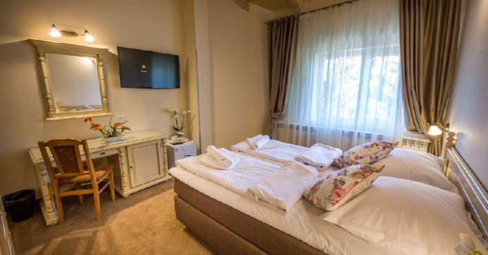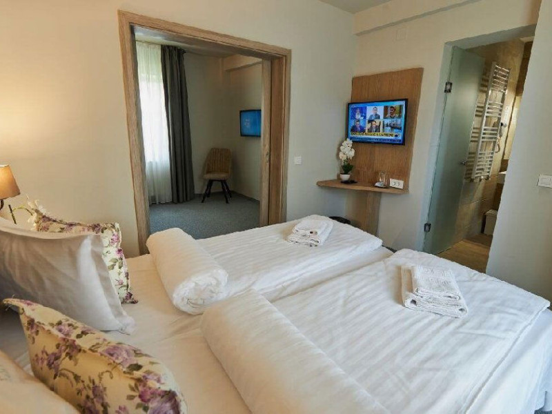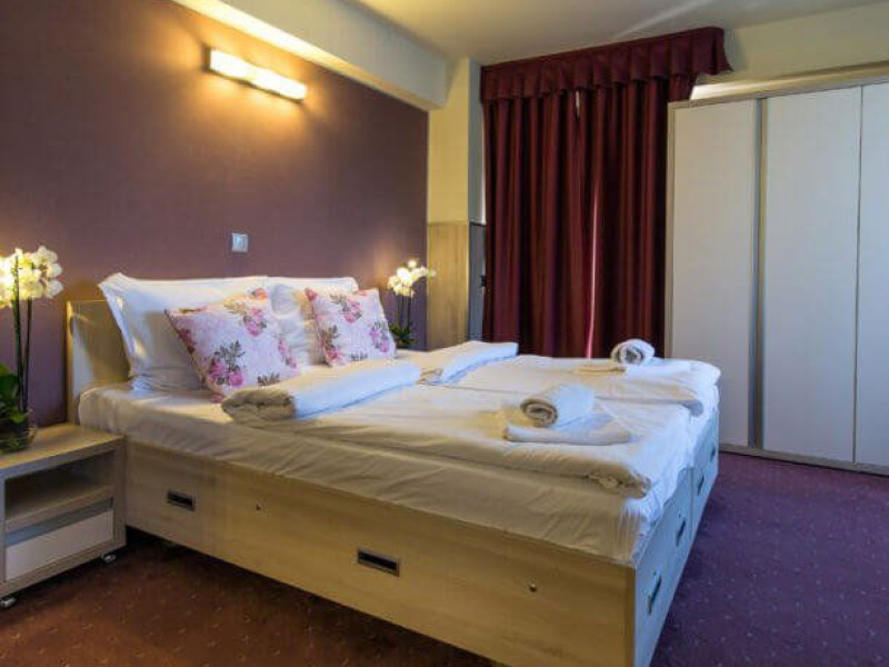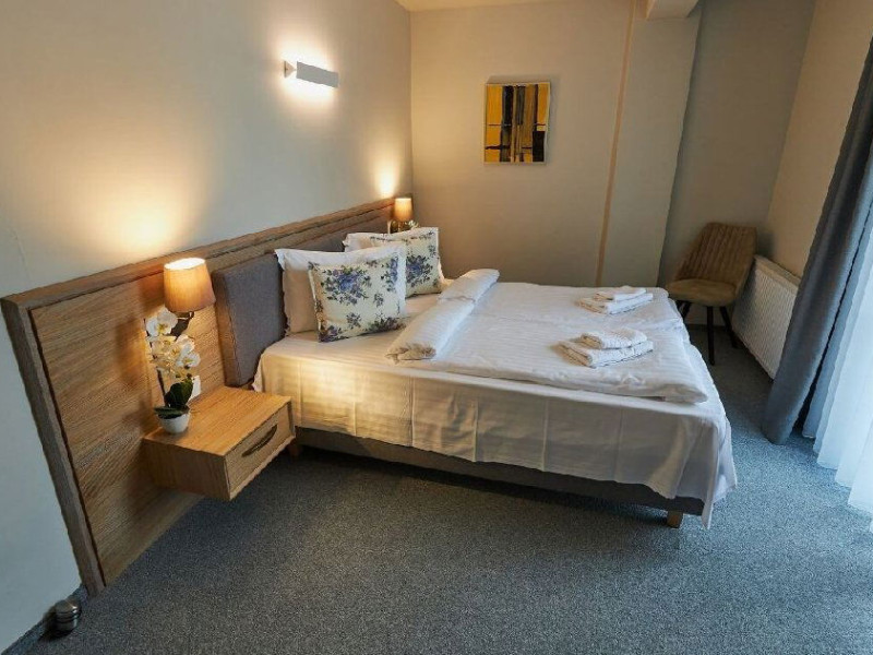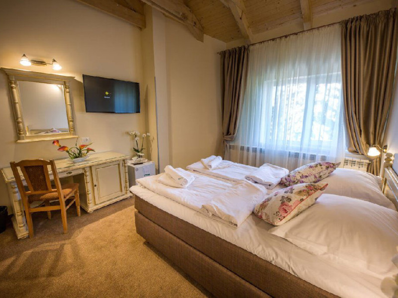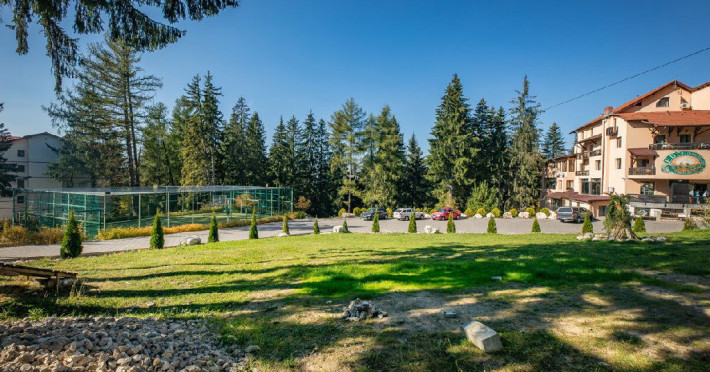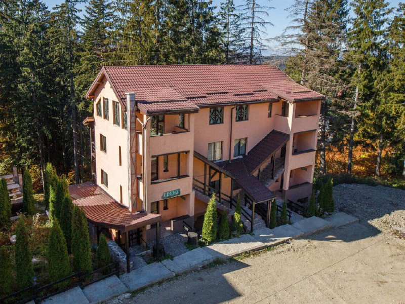 Situat in zona Cioplea, intr-o zona deosebit de linistita de la liziera padurii, Complexul Hotelier Eden pune la dispozitia oaspetilor sai toate dotarile unei unitati de cazare de 3 stele Capacitatea totala a complexului este de 32 de camere (single, duble si apartamente), in cazul grupurilor mari aceasta putand fi suplimentata pana la 150 de camere.Complexul isi asteapta turistii cu camere modern decorate, ce dispun de TV LCD cu diagonala mare, minibar, seif, uscator de par, telefon, internet wireless gratuit si baie proprie. Complexul Eden - Belvedere pune la dispozitie: - 200 de dtrcturi de cazare; - 12 sali de conferinte; - Fun Park; - teren de sport multifunctional cu nocturna (fotbal, tenis de picior, baschet, handbal); - loc de joaca spatios pentru copii. Eden Grand Resort include cladirea principala Eden ce reuneste Restaurantele, salile de conferinta, plus cladirea Eden 1, cladirea Eden 2 si cladirile Eden 3 si 4 sunt situate la 250 metri distanta fata de cladirea principala. Cu 120 de locuri de cazare unitatea isi asteapta oaspetii tot timpul anului. Cele peste 6 tipuri de unitati de cazare sunt atent decorate si aranjate, astfel incat sa raspunda tuturor dorintelor de buget si confort. Oferta hoteliera este destinata atat unui calator de tranzit, cat si unui turist care doreste o experienta de relaxare completa. Cladirea Eden principala dispune de: - 7 camere duble Eden; - 2 apartamente standard; - 2 apartamente cu hidromasaj; - 2 apartamente deluxe cu semineu;- 2 duplex-uri. Eden 1 dispune de 2 garsoniere. Eden 2 dispune de 1 suita (4 persoane), 1 garsoniera si o suita. Eden 3 dispune de 8 camere duble Forest si 4 camere duble superioare Forest. Eden 4 dispune de 7 camere duble Junior. Eden 5 dispune de 6 camere duble economy cu balcon si 2 garsoniere. In restaurantul, terasa si barul complexului, turistii pot savura in conditii incantatoare o gama foarte variata de preparate si bauturi, de la bautura preferata pana la cele mai bune preparate culinare romanesti sau cele mai gustoase preparate vanatoresti (caprioara, mistret, urs, cerb, iepure, fazan si prepelita). Elegantul restaurant are o capacitate de 150 de locuri, terasa - restaurant rustic - este acoperita, are 250 de locuri, iar barul dispune de internet cafe, cu 30 de locuri. Restaurantul dispune si de un separeu intim cu o capacitate de pana la 50 de locuri. NOU! Animalele de companie pot fi cazate la EDEN PET HOTEL in functie de disponibilitate, la tarifele din momentul rezervarii! Masaj (cu programare) Internet cafe cu acces gratuit nonstop Restaurant Atractii in zona: - Trasee turistice montane in imprejurimi (Canionul Sapte Scari, Cascada Tamina, Pestera de Gheata, Cheile Rasnoavei), -Manastirea Sfantul Nicolae, - Biserica ortodoxa Sfintii Imparati Constantin si Elena, - Capela romano-catolica Timisul de Jos, - Manastirea romano-catolica Timisul de Jos, - Monumentul Eroilor - Valea Rasnoavei, - Monumentul Mihail Saulescu, - Monumentul Eroilor din gara Predeal