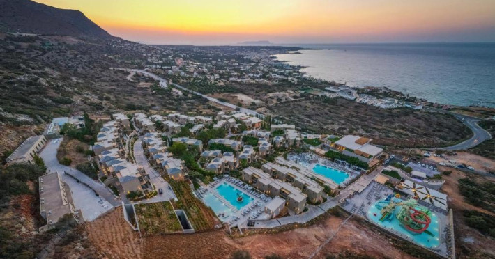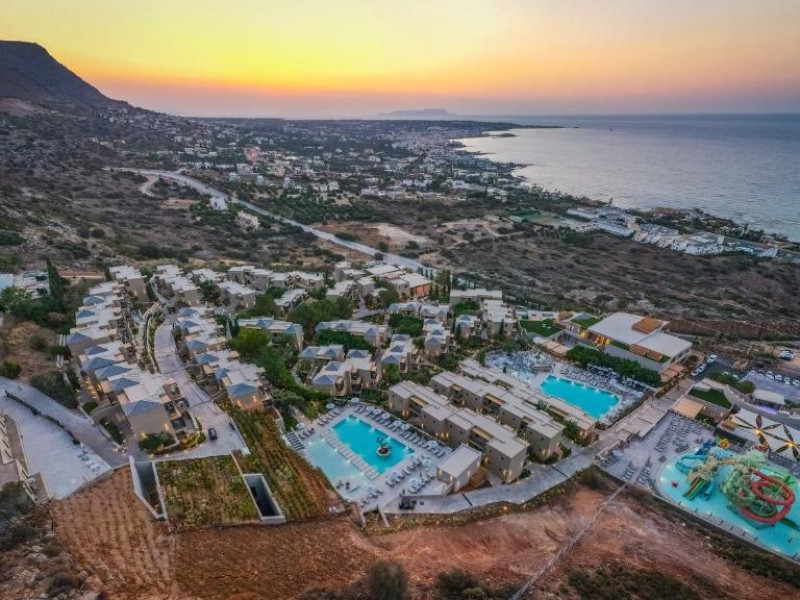 Există un parc acvatic cu tobogane pentru oaspeți, inclusiv pentru copii, precum și diferite baruri de zi și de noapte. Hotelul oferă o compoziție unică de grădină și copaci şi creează o atmosferă autentică a satului cretan.