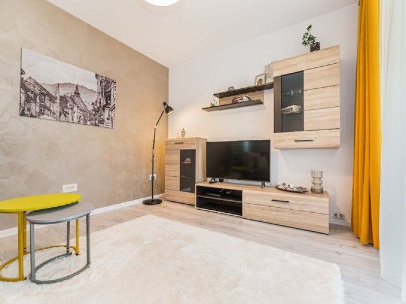 A perfect fit for a big group of travellers: apartment Ella is located in Brasov. This apartment is located nearby from the city center.A perfect fit for a big group of travellers: apartment Ella is located in Brasov. This apartment is located nearby from the city center.If you travel by car, theres a free parking zone. For the free movement around the city, the apartment offers a transfer for you. Accessible for guests with disabilities: the elevator helps them to go to the highest floors. There are other services available for the guests of the apartment. For example, a laundry.If you travel by car, theres a free parking zone. For the free movement around the city, the apartment offers a transfer for you. Accessible for guests with disabilities: the elevator helps them to go to the highest floors. There are other services available for the guests of the apartment. For example, a laundry..EUR airport not included 25 one way
