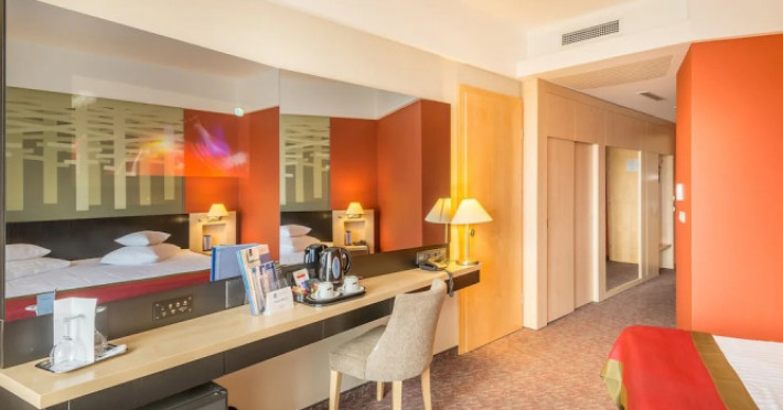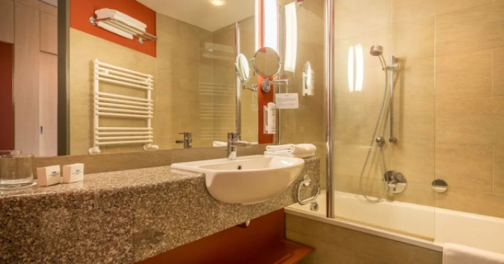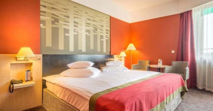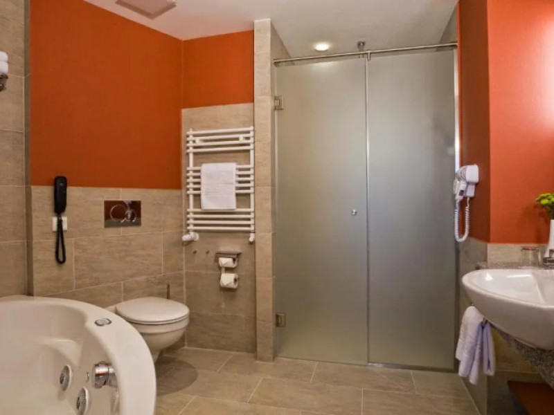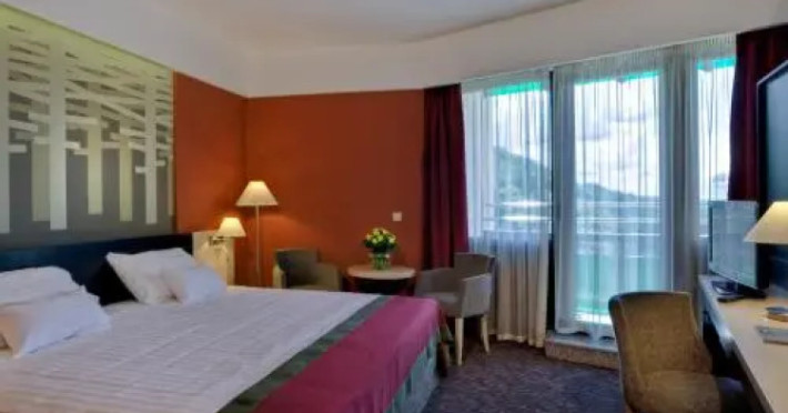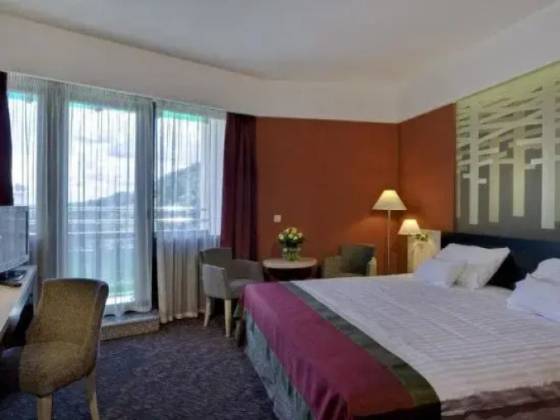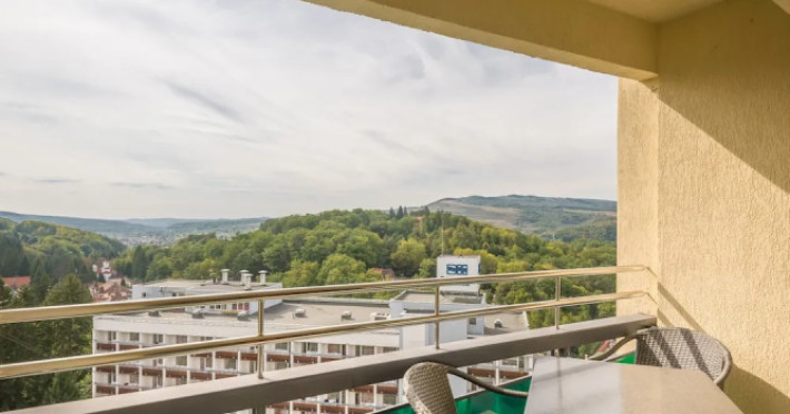 Good choice if youre looking forward to taking some rest at the hotel as much as to walking around the city. Hotel Ensana Bradet is located in Sovata. This hotel is located minutes away from the city center.Good choice if youre looking forward to taking some rest at the hotel as much as to walking around the city. Hotel Ensana Bradet is located in Sovata. This hotel is located minutes away from the city center.Spend an evening in a nice atmosphere of the bar. You can stop by the restaurant. If you cant live without coffee, drop by the cafe. Free Wi-Fi is available on the territory. Ask for more information when checking in.Specially for tourists who travel by car, theres a free parking zone. If you travel by car, you can park in a paid parking zone. Also, the following services are available for guests at the hotel: a massage room, a sauna, a solarium, a steam bath, a spa center and a doctor. Sports fans are going to love a fitness center and a gym.Tourists who cant live without swimming will appreciate a pool and an indoor pool. In the hotel, you can arrange a business meeting, a board meeting, and even a job as there is a conference hall and meeting and presentation facilities. You wont have to leave your pet at home as they are allowed. If you want to make your journey even more comfortable, you can order a transfer.Accessible for guests with disabilities: the elevator helps them to go to the highest floors. There are other services available for the guests of the hotel. For example, a laundry, ironing and a safe-deposit box. The staff of the hotel speaks English.Spend an evening in a nice atmosphere of the bar. You can stop by the restaurant. If you cant live without coffee, drop by the cafe. Free Wi-Fi is available on the territory. Ask for more information when checking in.Specially for tourists who travel by car, theres a free parking zone. If you travel by car, you can park in a paid parking zone. Also, the following services are available for guests at the hotel: a massage room, a sauna, a solarium, a steam bath, a spa center and a doctor. Sports fans are going to love a fitness center and a gym.Tourists who cant live without swimming will appreciate a pool and an indoor pool. In the hotel, you can arrange a business meeting, a board meeting, and even a job as there is a conference hall and meeting and presentation facilities. You wont have to leave your pet at home as they are allowed. If you want to make your journey even more comfortable, you can order a transfer.Accessible for guests with disabilities: the elevator helps them to go to the highest floors. There are other services available for the guests of the hotel. For example, a laundry, ironing and a safe-deposit box. The staff of the hotel speaks English.In the room, for you, there is a TV, a mini-bar and a bathrobe. Please note that the listed services may not be available in all the rooms.In the room, for you, there is a TV, a mini-bar and a bathrobe. Please note that the listed services may not be available in all the rooms..EUR not included unspecified 12 per guest per stay