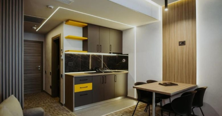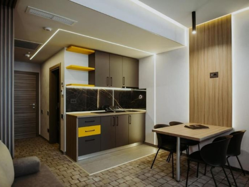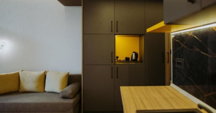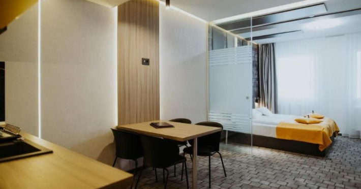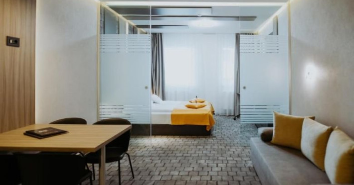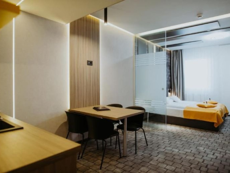 -Apartament 60mp: dispune de un chicineta, pat matrimonial si o canapea extensibila. Capacitatea maxima de patru persoane -Camera Dubla 16mp: dispune de un pat matrimonial mare. Capacitatea maxima de doua persoane -Camera Triple 21mp: dispune de un pat matrimonial si un pat single. Capacitatea maxima de trei persoane -Studio 40mp: dispune de chicienta si un pat matrimonial. Capacitatea maxima de doua persoane