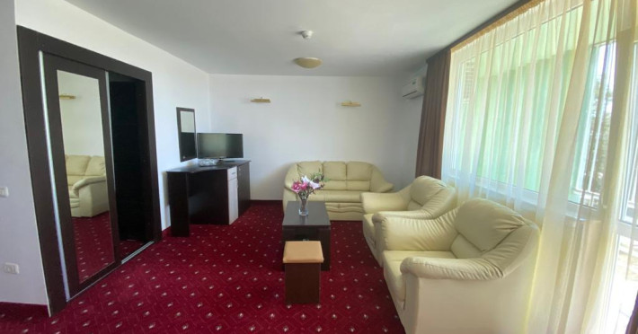 Amplasare: in zona de sud a statiunii Eforie Nord la cateva minute de centrul statiunii, la circa 100 m de plaja Belona. Facilitati hotel: 117 camere cu pat matrimonial, 152 camere cu doua paturi si balcon, 20 apartamente cu un dormitor, restaurant Perla Marii cu autoservire (700 locuri), piscina exterioara, 2 locuri de joaca pentru copii, parcare pazita. Facilitati camere: mobilier nou, baie proprie cu cabina de dus, TV, frigider, AC, Wi-Fi. Camerele matrimoniale NU au balcon, iar camerele twin au balcon si vedere la piscina.