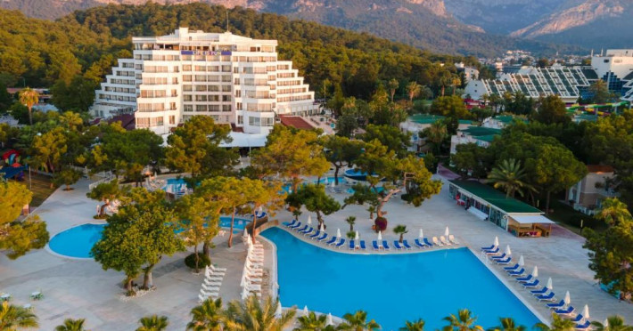 Facilitati hotel: Deschis in anul 1994, fiind renovat ultima data in anul 2018, hotelul are o suprafata totala de 43.000 mp. Hotelul dispune de restaurant, resaturant a la carte, bar, parc acvatic, SPA, piscine, aerobic, club pentru copii, teren de tenis, camera de jocuri, facilitati pentru sporturi acvatice, club de noapte.