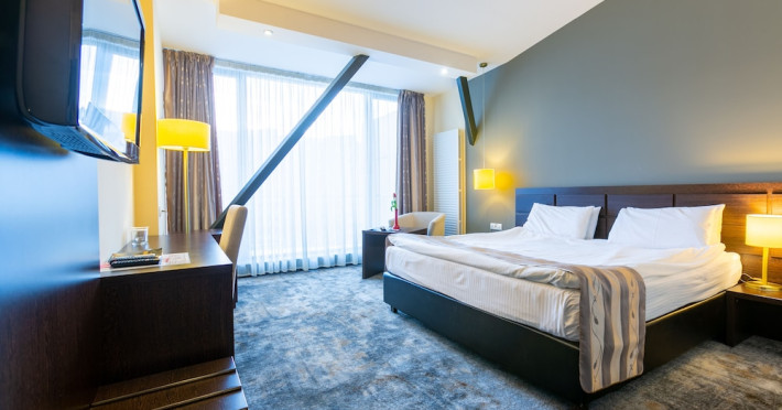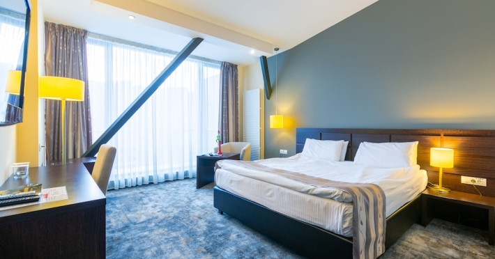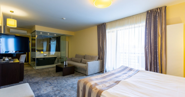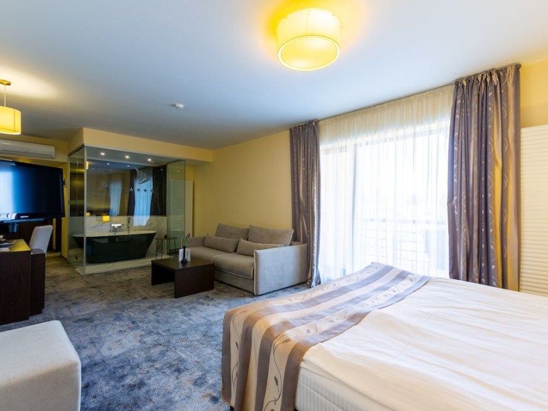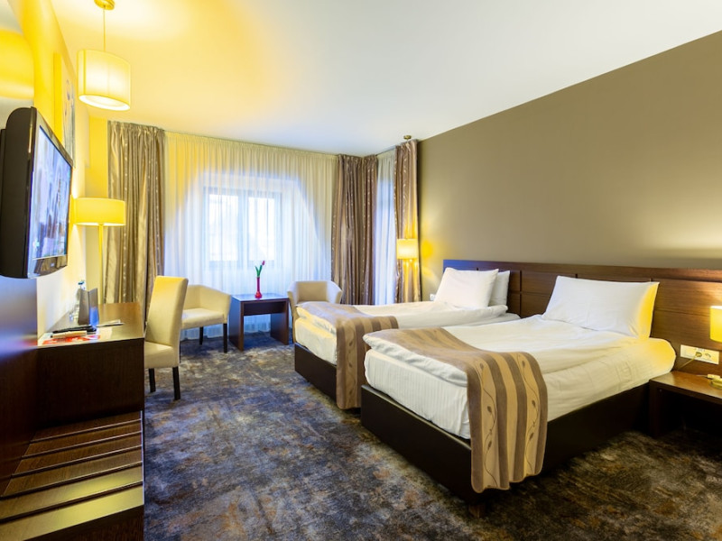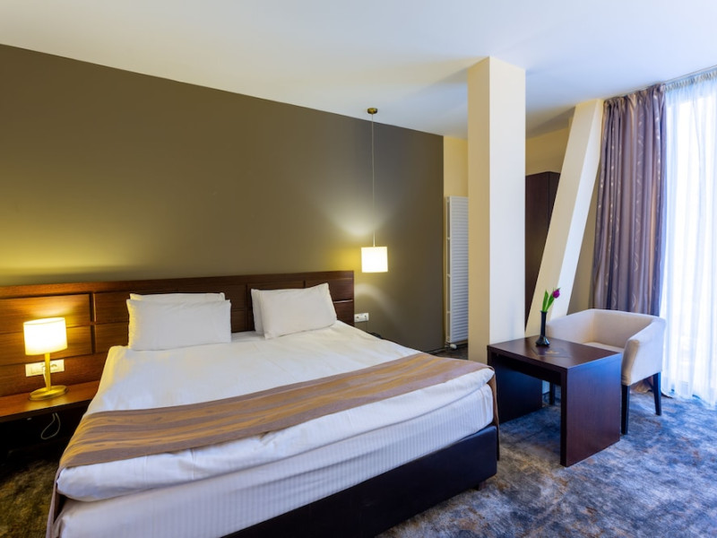 The stylish Hotel Golden Time is located in the business area of Brasov, 2.2 mi from the historical center, and offers air-conditioned rooms and an à -la-carte restaurant with Lebanese and international cuisine. The reception is open 24 hours and free WiFi is available in the entire hotel. All accommodations units come with modern facilities. These include a mini-bar and a flat-screen TV with cable channels. Each unit also contains an private bathroom, provided with bathrobes, slippers and a hairdryer. Some have a balcony as well. To start a day, there is a rich buffet breakfast served. The on-site bar with a summer terrace welcomes its guests to unwind after a busy day. Halal dishes are also available. Poiana BraÈov Ski Resort is located within a 15-km reach and the Brasov Train Station is 1.6 mi away. The Golden Time Hotel also offers surcharge shuttle transfer to and from the airport. A local bus stop and a taxi stand are located right next to the property, and private parking is possible on site for free.No special conditions apply for groups. WiFi is available in all areas and is free of charge. Free private parking is available on site (reservation is not needed). Pets are not allowed. Children of all ages are allowed. Children 2 and under stay for free when using an available crib. Children 5 and under stay for free when using an existing bed. Children from 6 to 17 years old stay for 120 lei per person, per night when using an existing bed. People no matter the age stay for 120 lei per person, per night when using an available extra bed. Any type of extra bed or crib is upon request and needs to be confirmed by management. Additional fees are not calculated automatically in the total cost and will have to be paid for separately during your stay.Checkin Time: 14:00Checkout End Time: 12:00Hotel important information: In response to the coronavirus (COVID-19), additional safety and sanitation measures are in effect at this property. Guests are required to show a photo ID and credit card upon check-in. Please note that all Special Requests are subject to availability and additional charges may apply. Guests under the age of 18 can only check in with a parent or official guardian.