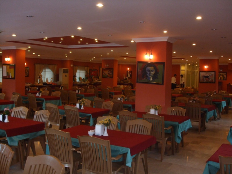 Restaurant deschis cu bufet cu o varietate de arome de mâncare turcească, un total de 5000 m2 zonă, bar de piscină, snack bar, piscină cu tobogane, piscină pentru copii, biliard american, volei, foosball, tenis de masă, darts, polo pe apă, , discoteca deschisă și Lobby oferă, de asemenea, servicii wireless gratuite. Plaja este la 100 m de mare. În plus, oaspeților hotelului le sunt oferite umbrele de plajă gratuite și șezlonguri.