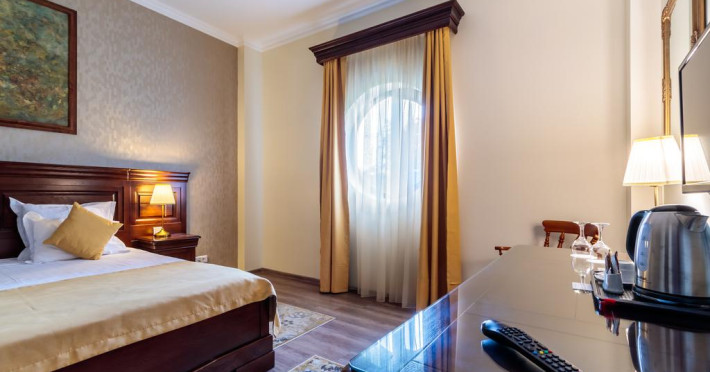 Facilities and services include reception open 24 hrs, a restaurant, a terrace bar, an art gallery, a indoor pool (extra charge), fitness center (extra charge), jacuzzi (extra charge), sauna (extra charge), steam room (extra charge), massages (extra charge), spa (extra charge), several meeting rooms and parking (limited spaces). The rooms feature TV, telephone, air conditioning/heating, wired/wireless internet, internet, safety box, hairdryer and a mini bar. Address: Str. Stirbei Voda Intrare Parc Zavoi, 7000, Ramnicu Valcea, Romania.