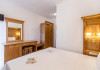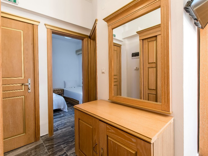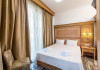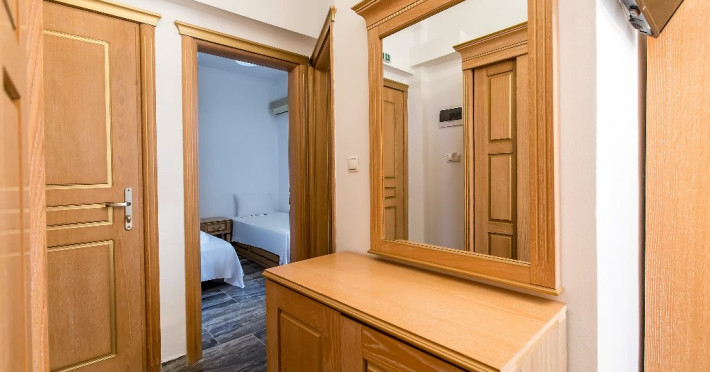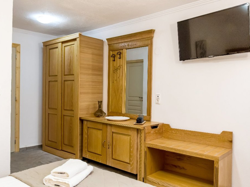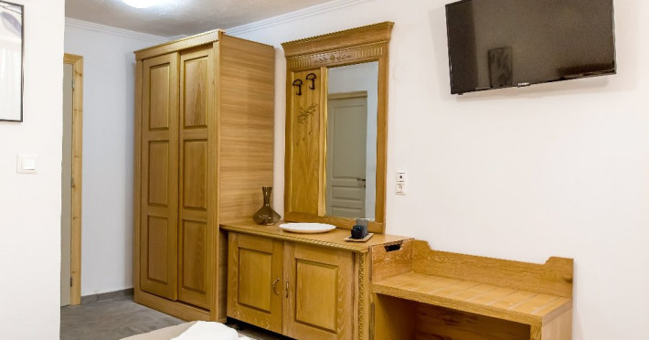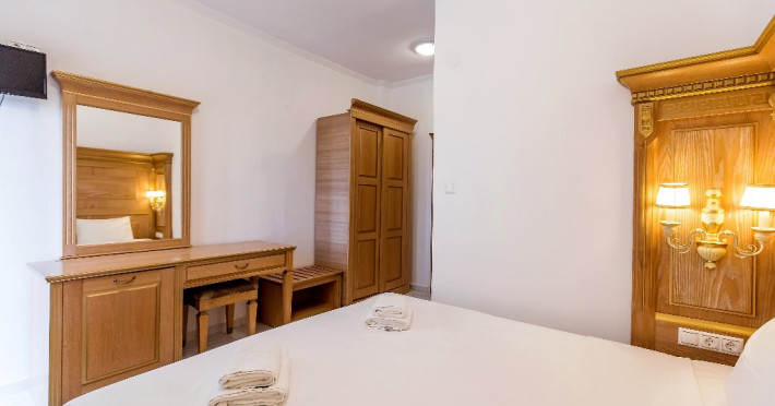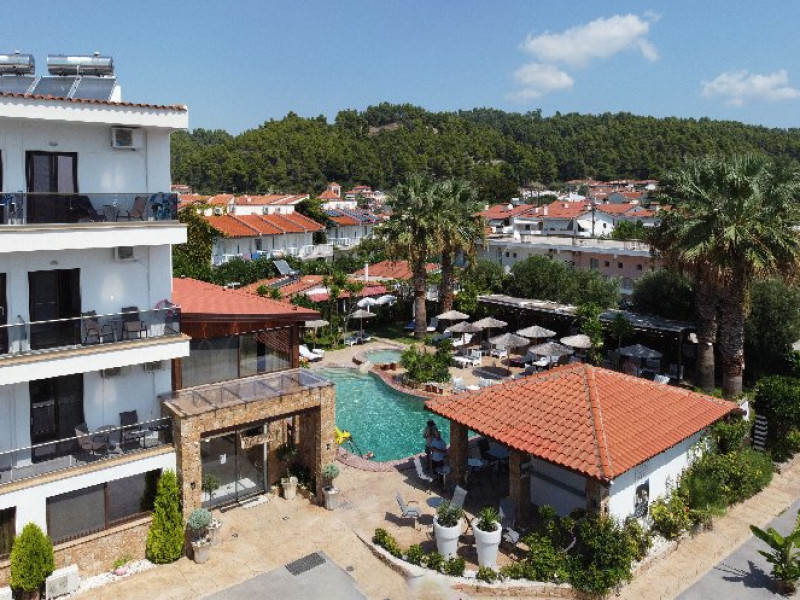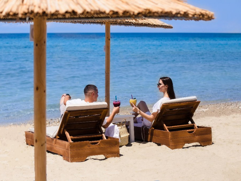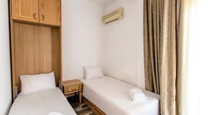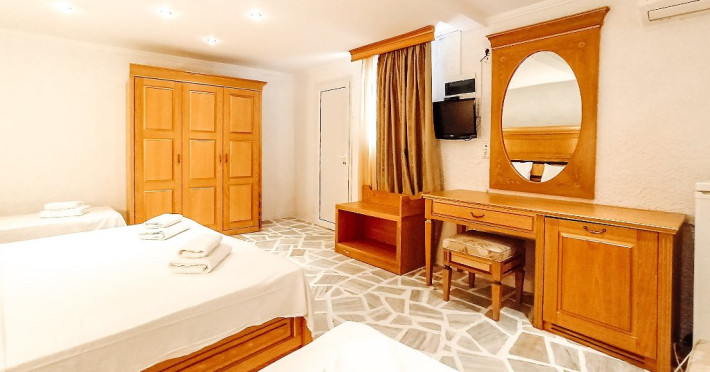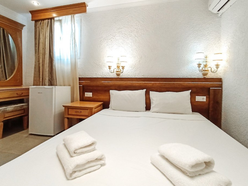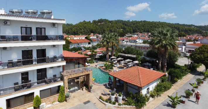 Dubla cu vedere laterala la mare: 18 mp, max 2 adulti + 1 copil Tripla economy: 25 mp, max 2 adulti + 1 copil, localizate la parter, cu vedere la strada, fara balcon Dubla bungalow: 18 mp, max 2 persoane Tripla bungalow: 18 mp, max 2 adulti + 1 copil Apartament family cu vedere la gradina: 40 mp, max 4 adulti, 2 adulti + 2 copii, 3 adulti + 1 copil Suita family: 46 mp, max. 4 adulti + 2 copii Distanta fata de plaja: 0 m Distanta fata de centru Paralia Fourkas: 700 m Distanta fata de aeroportul Salonic: 93 km