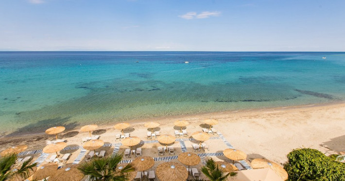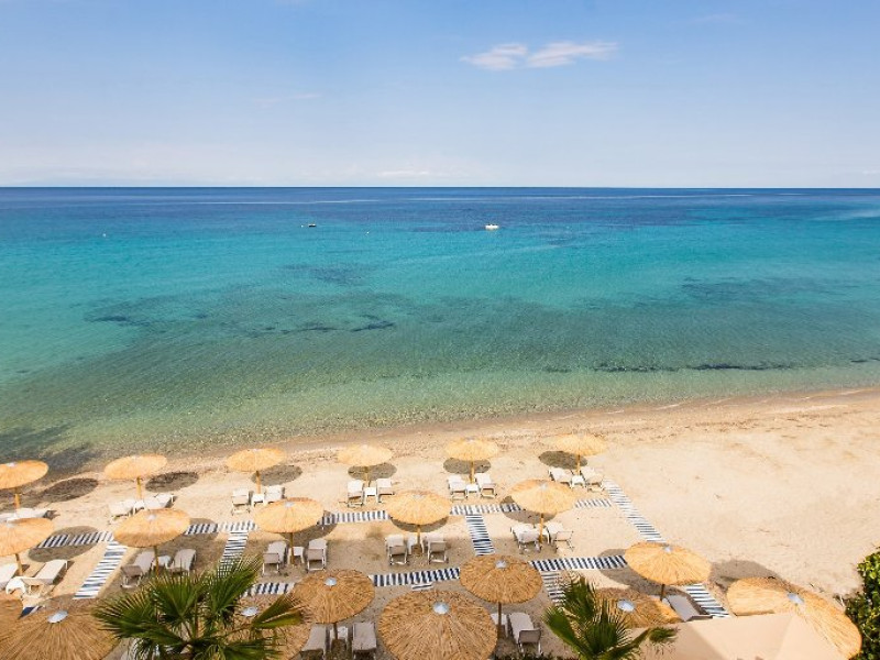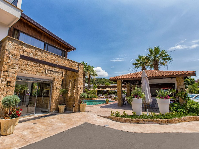 Localizare: Greek Pride Evlogia Hotel este impartit in Evlogia Seafront si Evlogia Anex. Evlogia Seafront se afla langa mare, iar Anex este compus din camere cu vedere la gradina. Transportul de la Evlogia Anex la Evlogia Seafront este asigurat de masinute. Complexul se afla in statiunea Paralia Fourkas, din peninsula Kassandra, la 700 m distanta de centrul statiunii si ofera un total de 89 de camere potrivite atat pentru cupluri, cat si pentru familii cu copii.