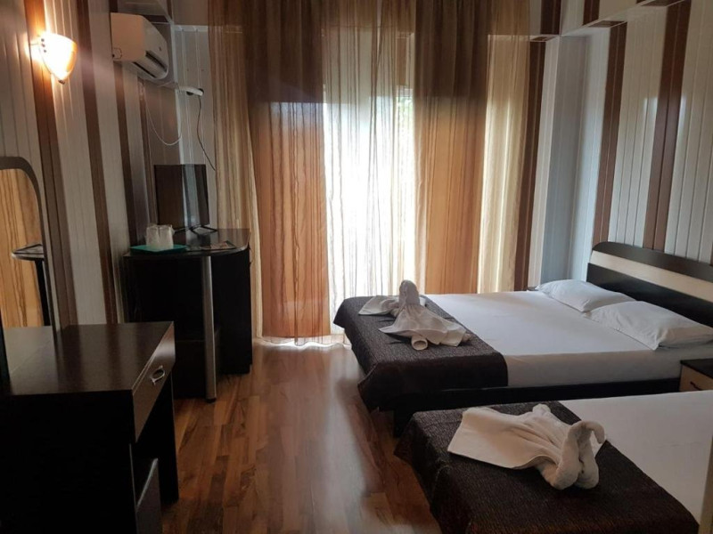 Camera tripla este dotata cu pat matrimonial (140x190), un pat single (80x190),tv, aer conditionat, wi fi, frigider, plase de tantari, podele de parchet si baie cu cabina de dus. Camerele de la etaj au balcon, cele de pe parter si etaj 3 nu au balcon. Suprafata 18 mp.