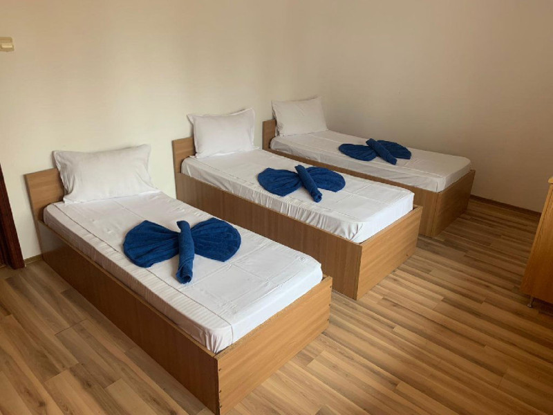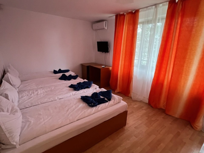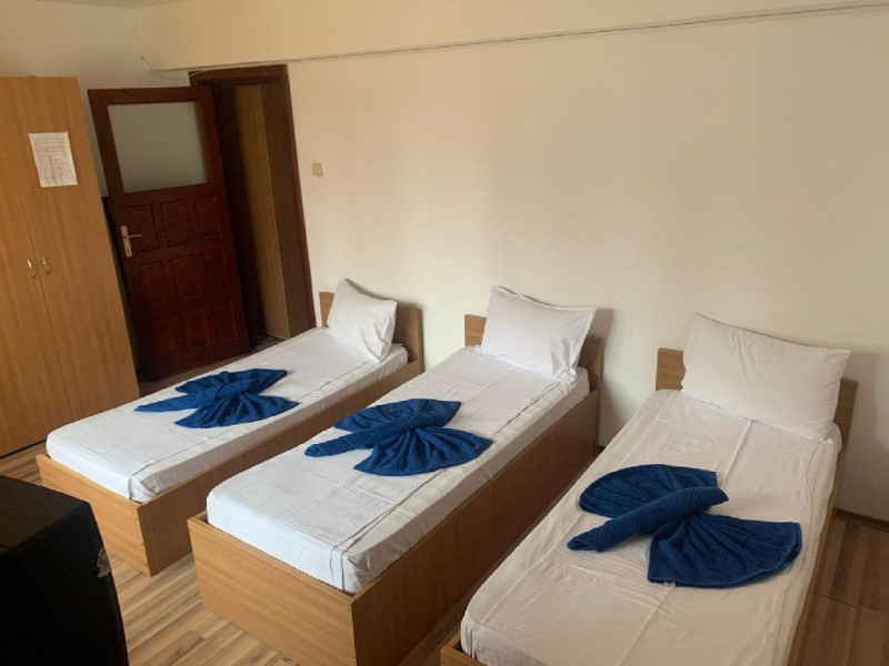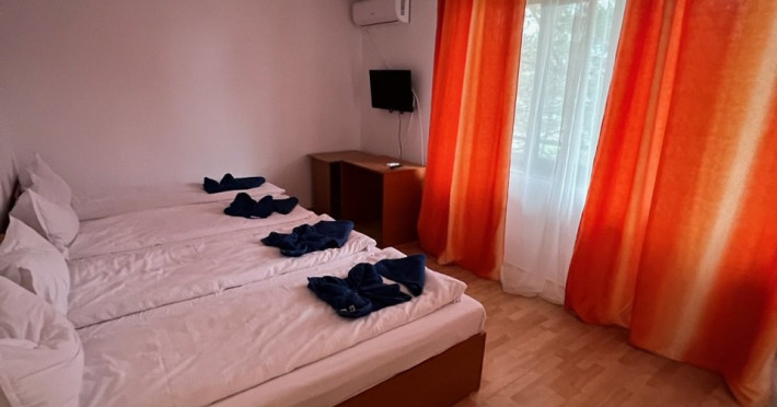 Localizare: Hellen Residence Costinesti este amplasata in zona de nord a localitatii Costinesti, la circa 150 m de plaja, in cartierul rezidential si la doar 5 minute de mers pe faleza, pana in centrul statiunii. Descriere: Hellen Residence este inconjurata numai de case de vacanta si moteluri, zona fiind departe de zgomotul statiunii, iar turistii pot beneficia aici de linistea si confortul de acasa. Camerele din Hellen Residence sunt extrem de spatioase si dispun de dotari care sa ii faca pe clienti sa petreaca aici clipe de neuitat. Serviciile de masa se ofera in cadrul Tiberius Residences situat la 10 metri de Hellen. Hellen Residence va asteapta la malul marii cu cele mai bune conditii si servicii penru a petrece o vacanta de vis. Camere: Hellen Residence dispune de 10 camere triple si 2 apartamente in care se pot acomoda 40 de adulti si 3 copii. Camerele Hellen Residence sunt extrem de spatioase si dispun de dotari care sa ii faca pe clienti sa petreaca aici clipe de neuitat, beneficiind de conditii modernizate la standarde inalte. De asemenea, toate camerele sunt dotate cu bai proprii cu dus, aer conditionat, TV ecran plat , minibar. Masa: Serviciile de masa sunt oferite de Tiberius Residences situat la 10 metri de Hellen Residence care dispune si de un restaurant cu linie de autoservire cu terasa cu o capacitate de 200 de locuri unde va puteti delecta cu cele mai proaspete si delicioase preparate culinare, gatite de un personal specializat.