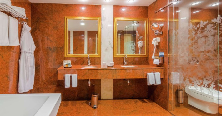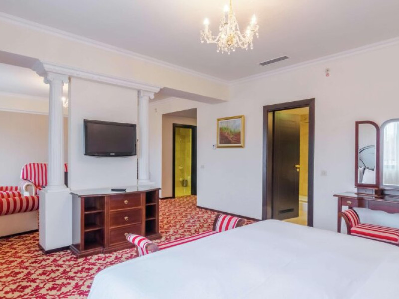 Heres the hotel you always dreamed of: hotel Hilton Sibiu is located in Sibiu. This hotel is located in 5 km from the city center.Heres the hotel you always dreamed of: hotel Hilton Sibiu is located in Sibiu. This hotel is located in 5 km from the city center.You can stop by the bar. Taste the local cuisine and have a rest in the restaurant. The hotel cafe is a nice place to have a snack. Free Wi-Fi on the territory will help you to stay on-line.If you travel by car, you can park in a parking zone. The following services are also available for the guests: a massage room, a sauna, a steam bath, a spa center and a doctor. Sports fans are going to love a fitness center. For winter sports fans, the following services are available: a skiing area and an off-site skiing area.You will find these entertainment amenities on the premises: a barbeque area. Swimming fans are going to enjoy a pool, an indoor pool and an outdoor pool. For participants of business meetings, there is a business center and event facilities. Want to have an excursion? Consult the tour assistance desk of the hotel.If you want to make your journey even more comfortable, you can order a transfer. Accessibility: there is an elevator/lift. At the guests disposal, theres also a laundry, dry cleaning, an ATM, ironing, press, car rental, a safe-deposit box and a concierge. The staff of the hotel will be happy to talk to you in English, Spanish, Italian and German.You can stop by the bar. Taste the local cuisine and have a rest in the restaurant. The hotel cafe is a nice place to have a snack. Free Wi-Fi on the territory will help you to stay on-line.If you travel by car, you can park in a parking zone. The following services are also available for the guests: a massage room, a sauna, a steam bath, a spa center and a doctor. Sports fans are going to love a fitness center. For winter sports fans, the following services are available: a skiing area and an off-site skiing area.You will find these entertainment amenities on the premises: a barbeque area. Swimming fans are going to enjoy a pool, an indoor pool and an outdoor pool. For participants of business meetings, there is a business center and event facilities. Want to have an excursion? Consult the tour assistance desk of the hotel.If you want to make your journey even more comfortable, you can order a transfer. Accessibility: there is an elevator/lift. At the guests disposal, theres also a laundry, dry cleaning, an ATM, ironing, press, car rental, a safe-deposit box and a concierge. The staff of the hotel will be happy to talk to you in English, Spanish, Italian and German.Guests will find the following in the room: a mini-bar, a bathrobe and slippers. Please note that the listed services may not be available in all the rooms.Guests will find the following in the room: a mini-bar, a bathrobe and slippers. Please note that the listed services may not be available in all the rooms..unspecified RON not included 60.1 RON not included 112 per guest per night.RON airport not included 45 one wayThe registration desk works around the clock.