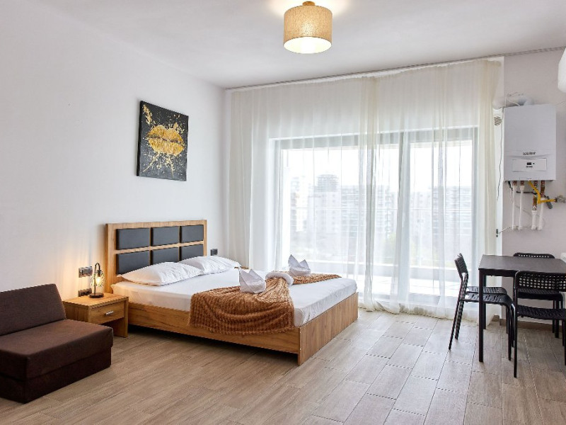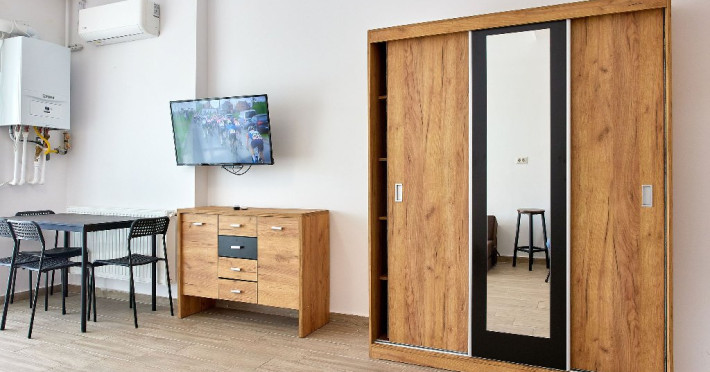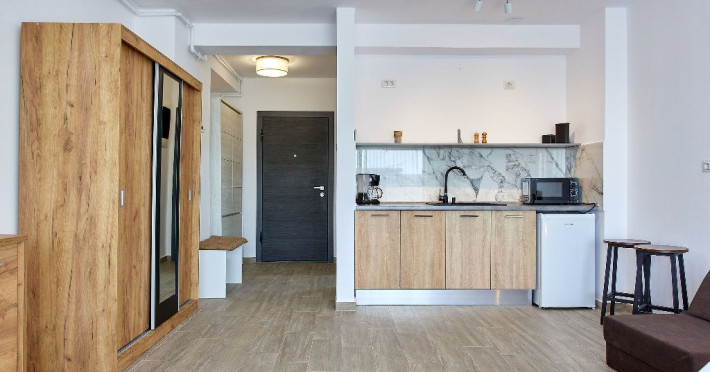 Garsonierele au o suprafata de 35m patrati, sunt complet mobilate si utilate pentru un confort ridicat, ofera lift si internet gratuit. Alcatuite din pat matrimonial si fotoliul extensibil, perfect pentru a treia persoana. Bucataria utilata cu frigider, cuptor cu microunde, aragaz si cafetiera pentru a va putea gati rapid micul dejun. Baile sunt spatioase si dotate cu cabina de dus. Balconul mobilat, perfect pentru a va relaxa si admira peisajul.