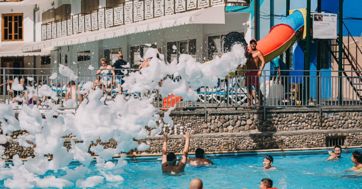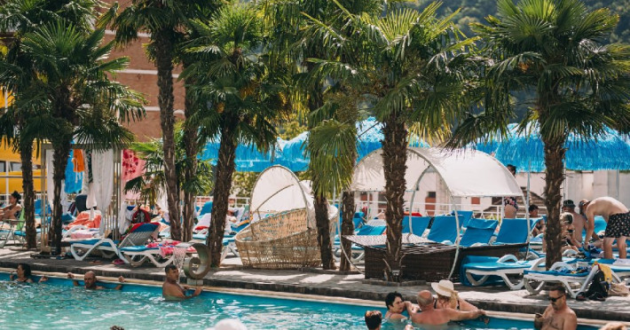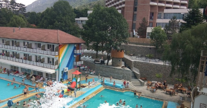 Piscinele exterioare ale hostelului, in numar de trei, cu apa termosulfuroasa: doua semiolimpice si una pentru copii, prevazute cu statii de filtrare si clorinare permanenta.Piscina interioara recent renovata, saunele si jacuzii aduc un plus pentru relaxarea turistilor. Piscinele exterioare functioneaza doar in sezonul cald!